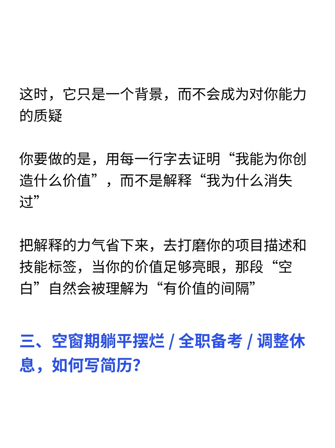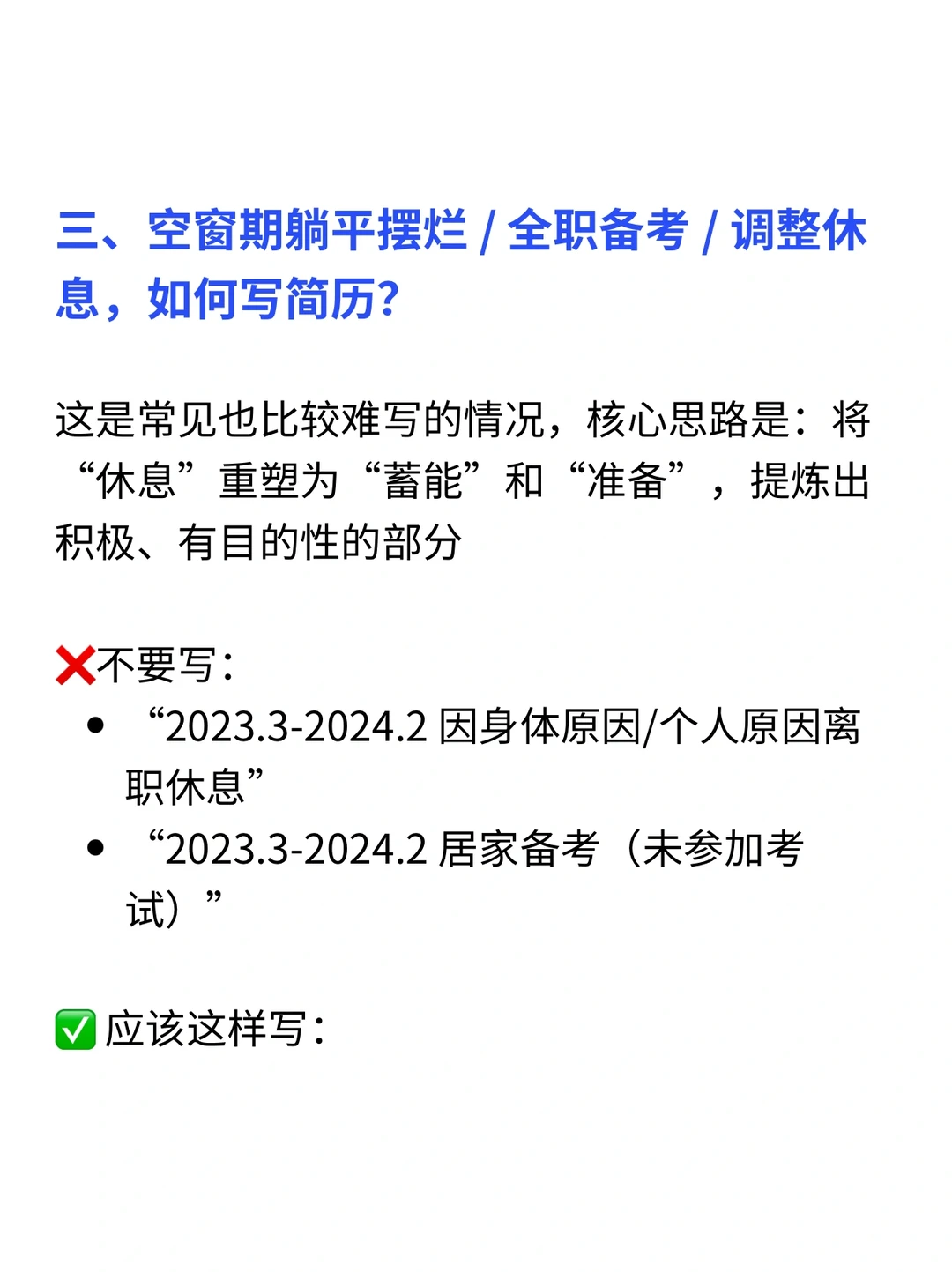 三、空窗期躺平摆烂 / 全职备考 / 调整休息,如何写简历?(详细内容👀见图)
