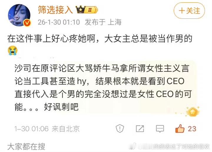 把大女主当讽刺词的不是莎头批自己么,现在知道拿出来了,在这件事上好心疼孙颖莎啊,大女主总是被拿去磕CP给男的辅酶
