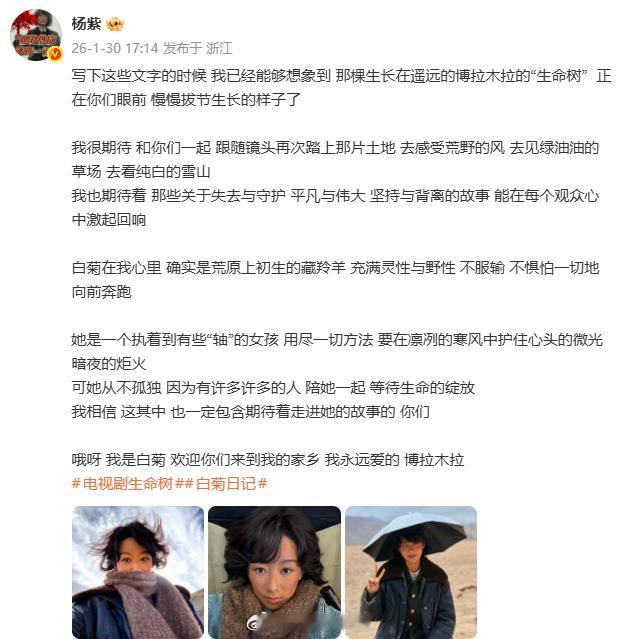 杨紫生命树开播发了长文杨紫生命树自拍杨紫《生命树》开播发了长文,还晒出自拍!