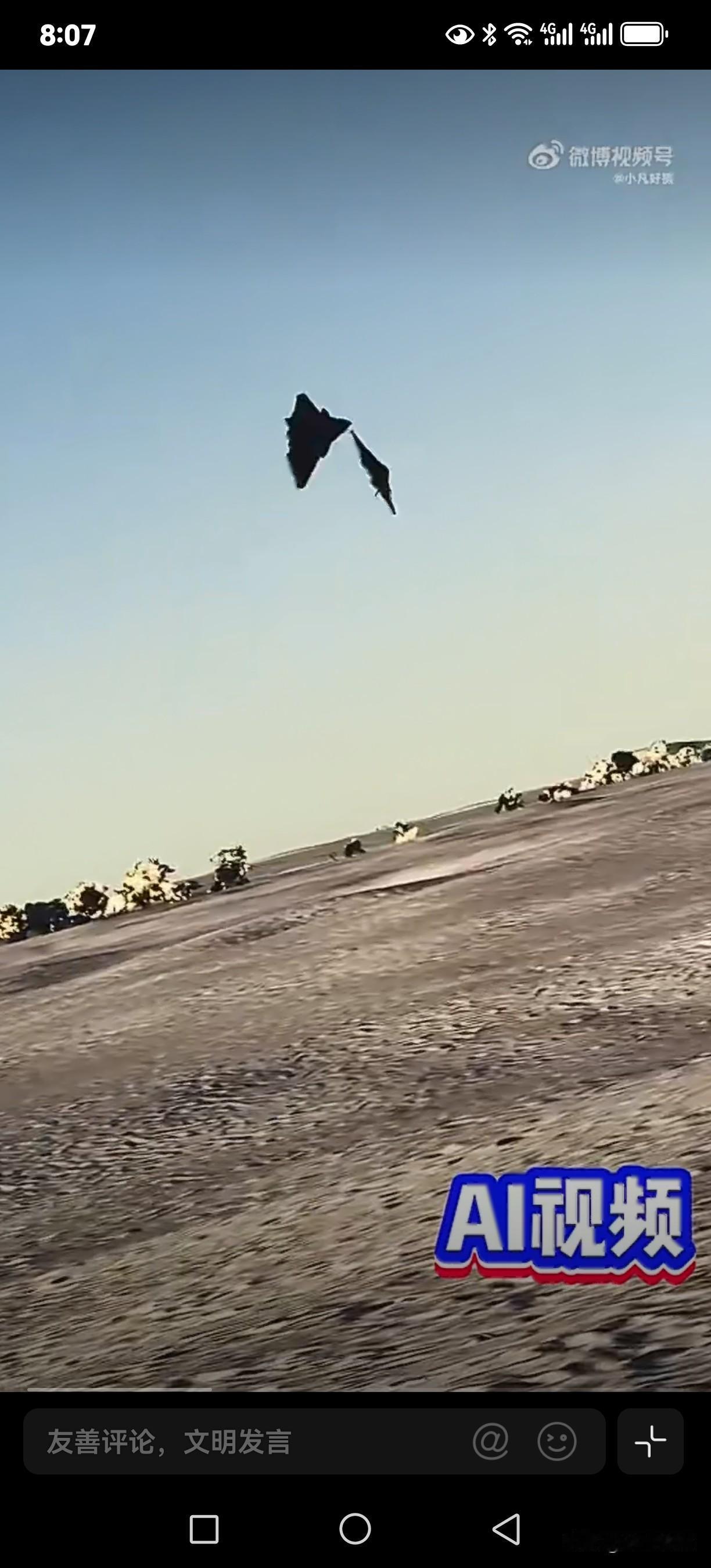 笑爆!多个邪教账号在X急不可耐叫唤:美国F-47战斗机在内华达沙漠上空进行试飞时被发现。[允悲] 事实上,该视频由人工智能生成,F-47尚未进行任何试飞。 根据美国空军的说法,首飞计划最早也要到2028年才会进行。F-35战机 美军F-35 美战机f35 美国f35 美国f-35 f35 战机 美国F-47