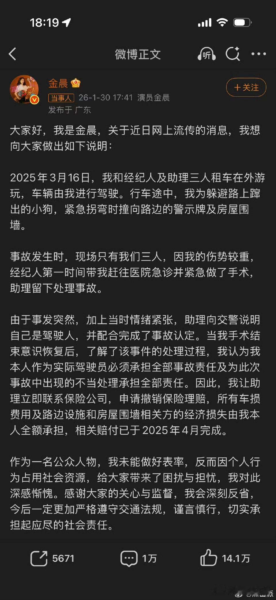 金晨事件通告出来了,没什么大问题,除非助理说顶包是共同行为,如果助理说只是她个人行为,那么金晨这次就惊险过关了。 这事处理的挺专业,比杨天真强,不和狗仔打口水仗是对的,网友的注意力是有限的,官方通告后再出道歉声明就不会有漏洞,事件就不会严重,自然很快就过去了。 至于助理到底是不是个人行为,网友们再较真也没用,即使金晨有嫌疑是故意找人顶包,但因为无法查证,只能疑罪从无,且不涉及人员伤亡,所以这事也只能按正常流程处理了,说实话都已经过去一年多了,该解决的早就解决了,怀疑早就没用了!