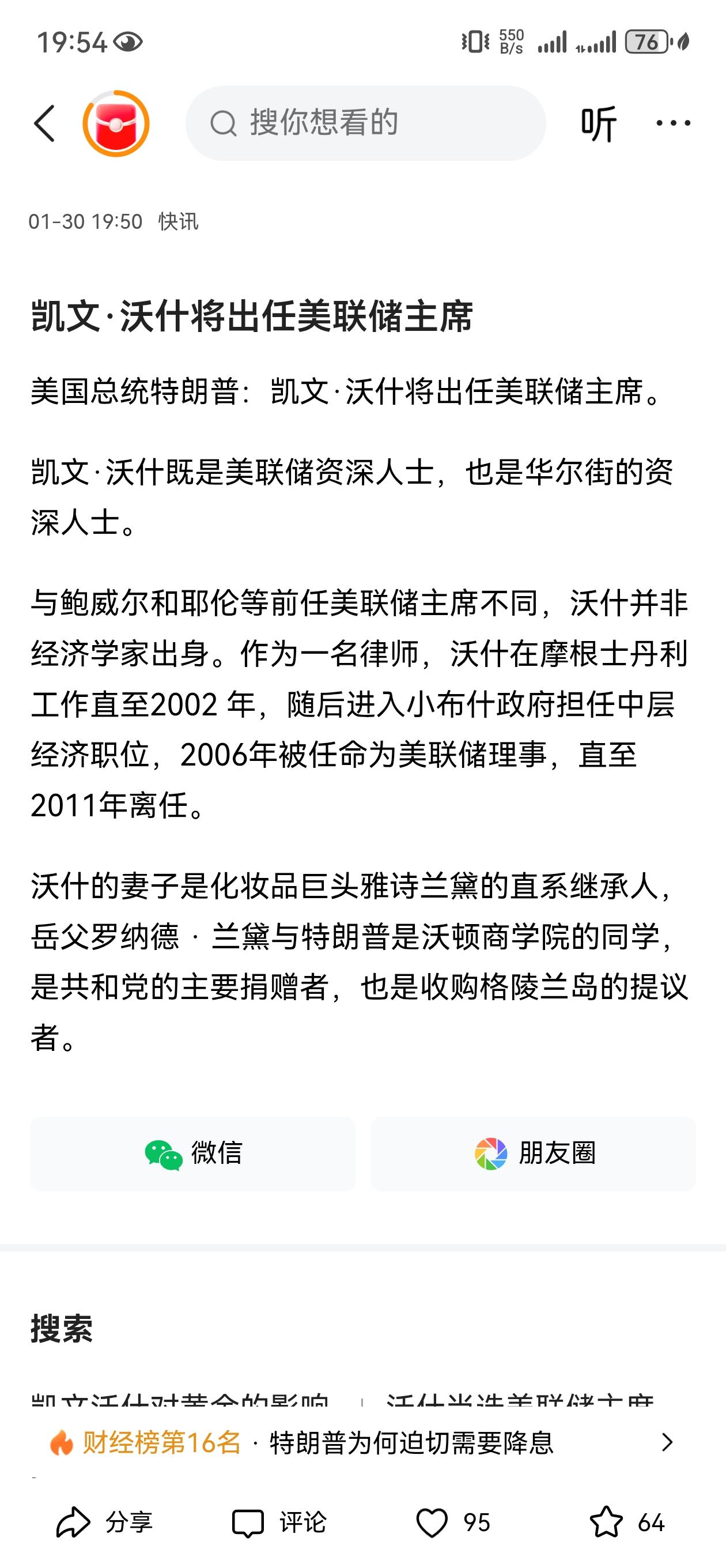 特朗普宣布凯文·沃什将出任美联储主席!特不靠谱这次找的这个人不是一般狠, 凯文·沃什上台后,与鲍威尔不同,这个人是美国的鹰派人物,除了站台特朗普外,此人早在2024年就指出了美联储降息50点的决策凸显出美联储在通货膨胀理论的不一致性,并公开质疑美联储。 此人担任美联储主席后,势必会一改美联储以往作风,与特朗普联手,这样特朗普完全能操控美元经济这把刀,把刀口对向世界各国了! 凯文·沃什从2006年开始担任美联储系统理事会成员,才曾经担任过美联储二十国集团代表。一定不要小瞧了这个人的手段。