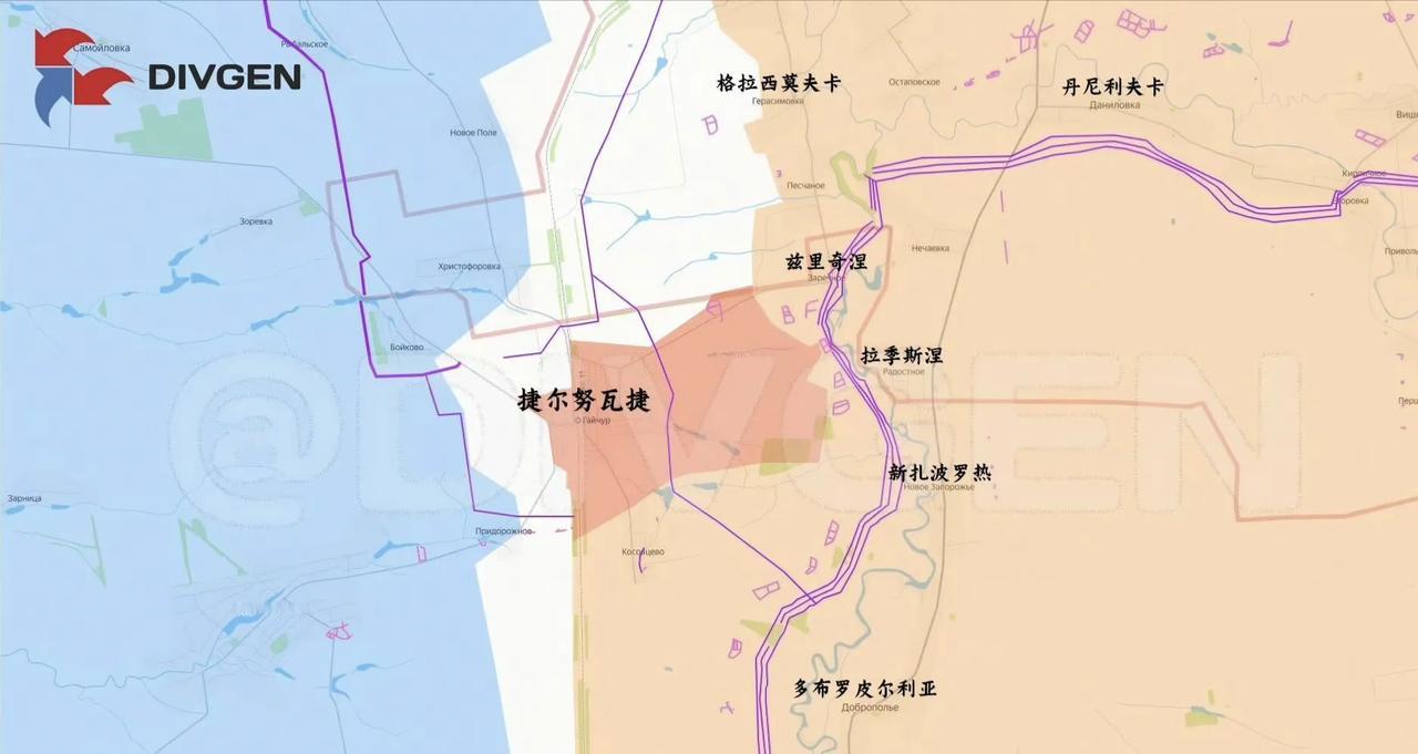 俄军东部集群取得了重大进展,在扎波罗热州古利艾波列以北击败了乌军抵抗,占领了捷尔努瓦捷。这儿是一处制高点,在扎波罗热平原和第聂伯罗彼得罗夫斯克平原,控制制高点即使不是决定性的,也至关重要。 控制捷尔努瓦捷高地后,俄军便可同时向多个方向推进。其中一个方向是连接巴甫洛格勒(第聂伯罗彼得罗夫斯克州)和奥列霍夫(库班,扎波罗热州)的T0408公路。这条公路是乌军奥列霍夫(库班)驻军的东部补给线,在地图局部图中以蓝色标出。俄军前沿阵地到最近的T0408公路路段的距离为13公里。#俄乌冲突#