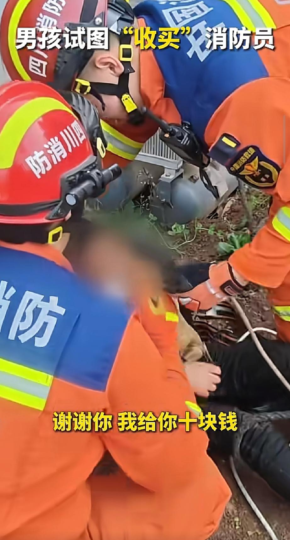 四川安岳,一个小男孩掉进水井,全身湿透,获救时对消防员说的第一句话竟然是: 不要跟我的家人讲! 说完觉得觉得不放心,又说: 我给你十块钱! 真是让人觉得搞笑,不过他给的“封口费”太少了,现在全国人民都知道了。 后来就知道为什么孩子害怕家人知道了,因为他父母来了之后,先是骂了一顿才带走。 不知道回去会不会挨揍!