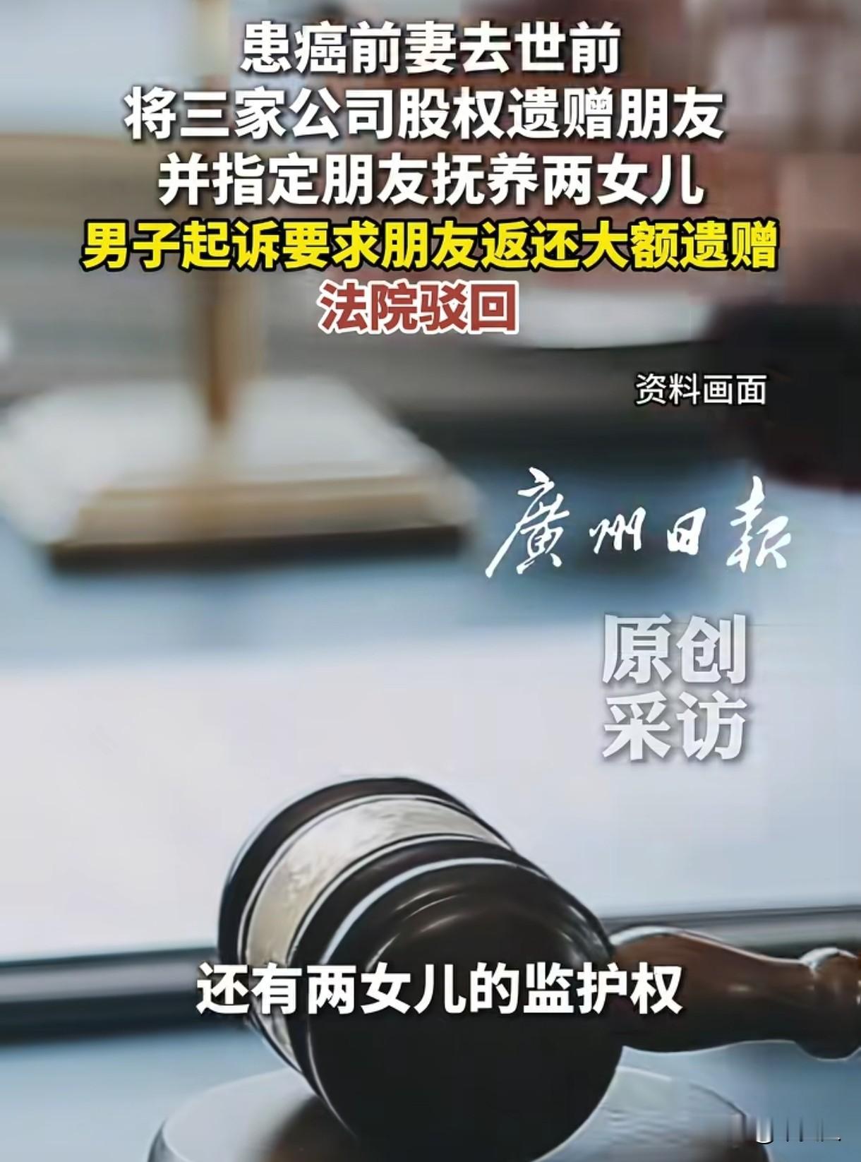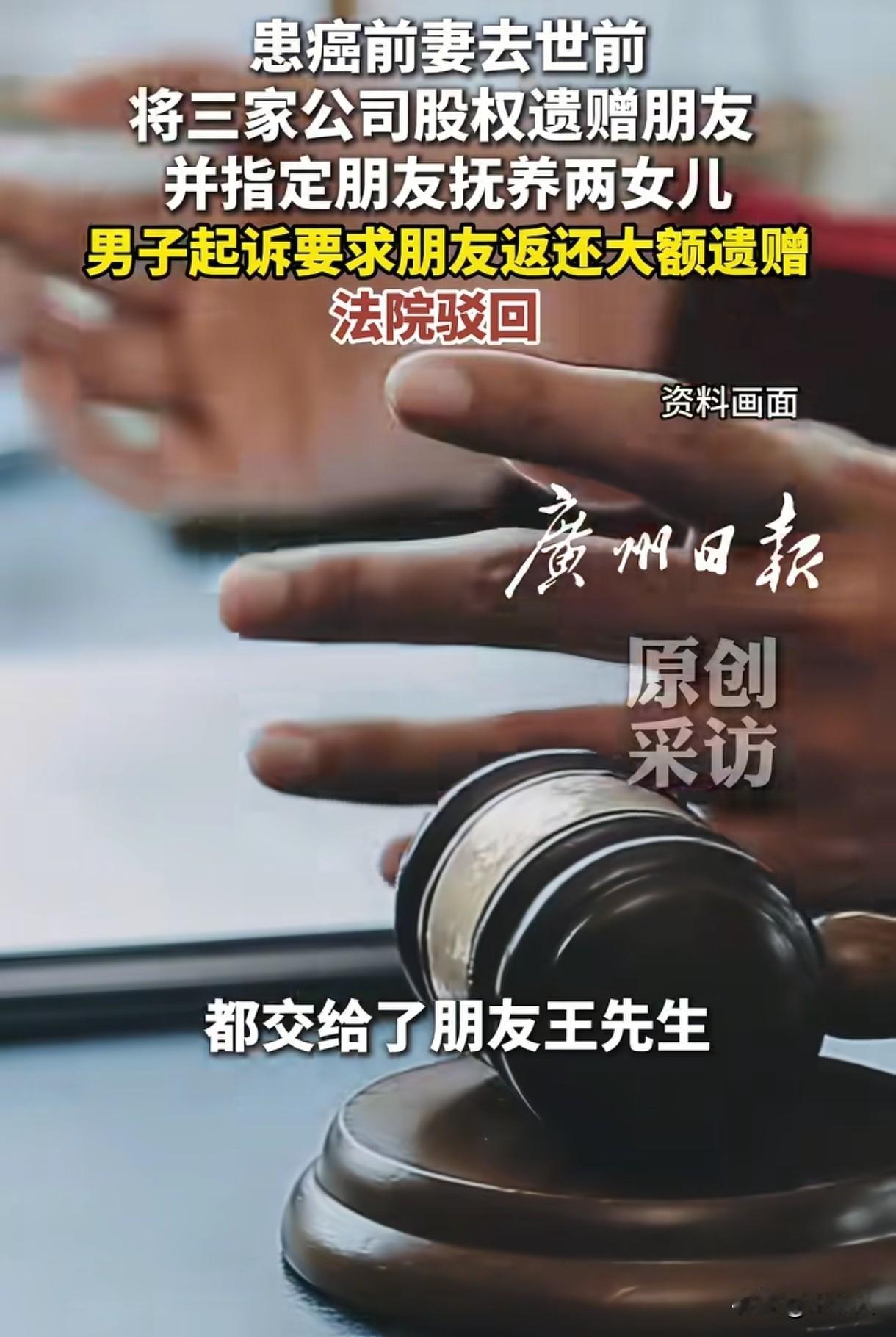 广东深圳,男子和前妻离婚一个月后,前妻去世,男子得知前妻立下多份遗嘱,将3家公司股权遗赠给了一个异性朋友,并指定朋友为2个女儿的监护人。前妻还把3000万财产留给了2个女儿,但是2个女儿要到22岁才能继承房产,前妻没有给她母亲留下任何遗产,只给他弟弟留了一套150万的房子,他觉得遗嘱不符合常理,将朋友夫妻告上法庭,结果让他傻眼。 2023年4月,蒋女士因卵巢癌离世,可她留下的遗产分配方案却引起了一系列的纠纷,张先生将蒋女士的朋友王先生夫妻告上了法庭。 蒋女士这一生,一共有3段婚姻,张先生是她的第三任丈夫。 2017年,47岁的蒋女士与42岁的张先生在深圳登记结婚,婚后两人和2个法定女儿共同居住生活,一家人幸福温馨,可这段甜蜜的生活只持续了6年。 得知自己患病后,蒋女士曾于2023年1月30日,立下了公证遗嘱,她将自己名下3家公司的股权及相应权益遗赠给了合作了15年之久的朋友王先生。 同时她在遗嘱中表示,希望王先生能在力所能及的范围内照顾她的两个未成年女儿至成年,给予他们关爱和关心、引导。 2023年3月5日,蒋女士又写下了一份自书遗嘱,指定王先生为自己2个女儿的第一顺位监护人,自己表妹黄女士为第二顺位监护人。 2023年3月6日,蒋女士和张先生协议离婚,双方约定:两个女儿均由蒋女士直接抚养,张先生无需支付任何抚养费。 同时,蒋先生还分得深圳的3套房产和惠州的1套房产,张女士还给了他230万补偿款,这些财产总价值大概有1000多万。 不久后,蒋女士又立下一份新遗嘱,指定王先生的妻子卢女士为遗嘱执行人。 她将价值约3000万元的多套深圳房产和存款留给2个女儿继承,房产待女儿22周岁继承,管理遗产人是卢女士。 蒋女士母亲未获遗产,弟弟分得重庆一套价值约150万元的房产。 蒋女士去世后,张先生得知前妻的遗产安排,认为妻子立下的这些遗嘱不符合常理。 两个女儿是他和前妻的法定女儿,是他从小养到大的,前妻为何会指定他人为孩子的监护人,另外,蒋女士母亲未获遗产、弟弟仅分得少量房产。 他认为前妻蒋女士曾患有精神类疾病,他怀疑前妻订立遗嘱时神志不清,遗嘱存在问题。 蒋女士去世后,2个女儿归张先生抚养。 2025年,张先生以自己和两个女儿的名义,将王先生和卢女士告上法院。 1、张先生主张蒋女士对王先生的遗赠是“附义务遗赠”,遗赠不具备正当理由,或违反公序良俗,应当无效。 《民法典》第1144条规定:遗嘱继承或者遗赠附有义务的,继承人或者受遗赠人应当履行义务。没有正当理由不履行义务的,经利害关系人或者有关组织请求,法院可以取消其接受附义务部分遗产的权利。 张先生主张蒋女士的遗赠是“附义务遗赠”,所附义务是王先生抚养两个女儿至成年并尽到监护人义务。 若王先生与蒋女士仅是同事关系,巨额财产遗赠无附义务不合理;若基于情侣关系,则损害被继承人利益且违反公序良俗。 他要求王先生移交股权给自己,或者支付股权收益,并每月支付2个女儿抚养费10万余元,直到女儿22岁止,每月支付38000元按揭款至还清,每月支付22000元监护风险成本等费用。 2、法院认为蒋女士的遗嘱真实有效,驳回了张先生及其女儿的诉求。 《民法典》第1133条规定:自然人可以立遗嘱处分个人财产,并可以指定遗嘱执行人。 法院审理认为蒋女士有权立遗嘱处分其个人财产,蒋女士在遗嘱中表述的“希望”王先生照顾其女儿,并非对接受遗赠设定的条件和义务。 蒋女士在遗嘱中将王先生指定为监护人时,完全未提及遗赠的相关内容,两份遗嘱相互独立,不存在附义务遗赠的情形。 蒋女士的遗嘱真实有效,法院驳回了张先生及两个女儿的诉求,案件受理费73400元由张先生承担。 法院另一份判决也驳回了张先生请求撤销卢女士遗嘱执行人和遗产管理人资格的主张。 此外,因张先生是两个女儿医学证明上记载的父亲,除法律规定的情形,其监护权不得被剥夺。 法院确认张先生是2个女儿的监护人、法定代理人,支持惠州房产过户给张先生,并要求对方支付部分款项给张先生。 对于这样的结果,张先生有些失望,但是他并未放弃,他表示自己还将继续寻求法律救济。 有人说,两人都已经离婚了,那前妻无论怎么分配财产,都跟前夫没有关系了,既然立了遗嘱,按照遗嘱分配就行了。 在有遗嘱的情况下,遗嘱继承优先于法定继承,如果遗嘱中没有给2个孩子留必要的遗产份额,那应该帮孩子争一争,如果给孩子留了遗产,那也没什么好说的。 可站在张先生的角度来看,估计他对前妻这样的安排也是存疑的。 对于此事,大家怎么看?