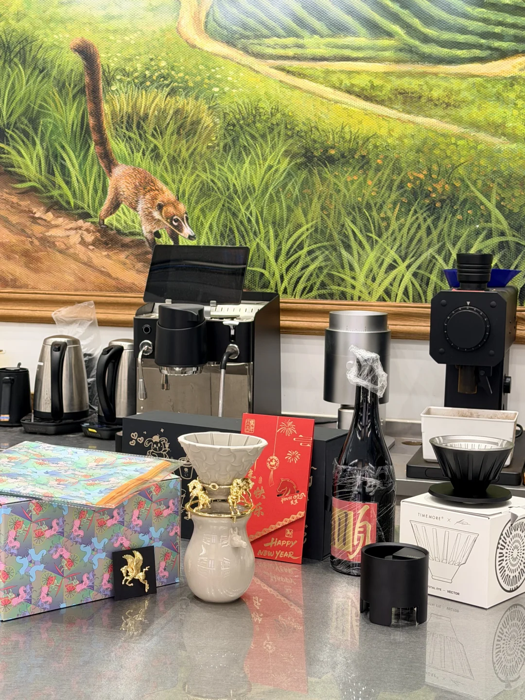 刚从非洲回来,南京赛区三个大比赛都结束了,感谢小伙伴的支持,希望南京站,咖啡拉花,咖啡冲煮和咖啡师赛,选手们都收获满满,比的开心🥳 今天早上在公司拆箱了一些新年礼物,谢谢 TIMEMORE 马上我就去玩起来 这两块巧克力很好吃,我也是蹲点在线抢来的… 玩点新东西