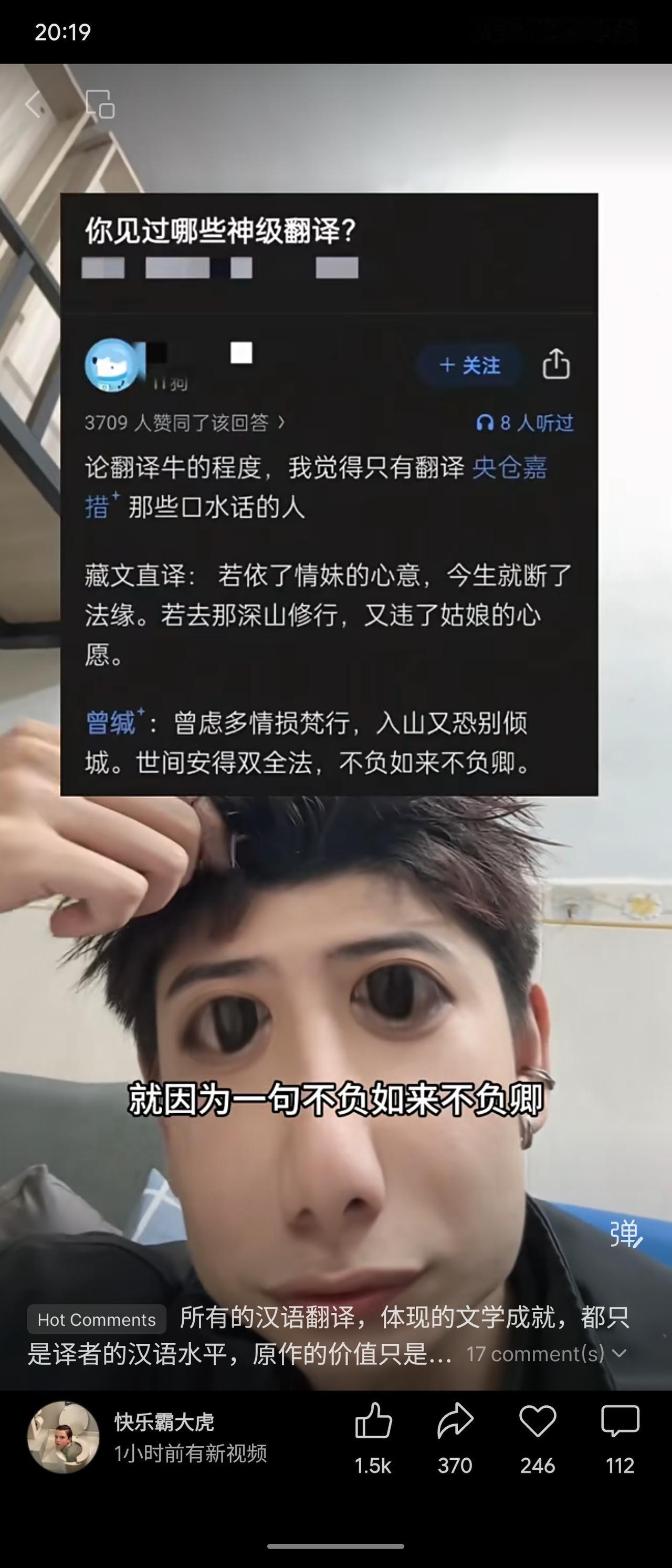 讨论仓央嘉措诗歌的经典汉语翻译。藏文原意直白,译为“世间安得双全法,不负如来不负卿”后广为传颂,被视为“神级翻译”。