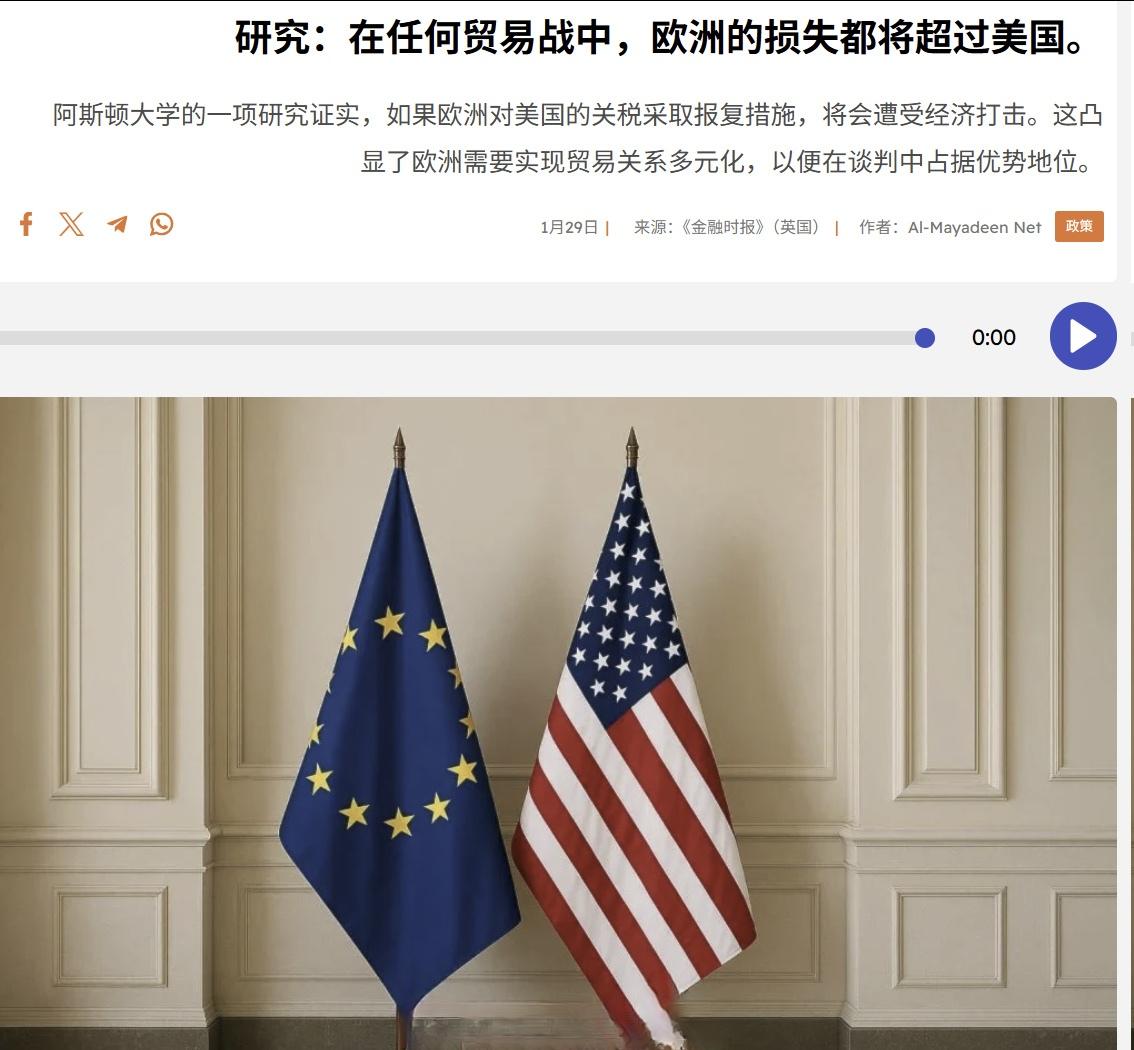 阿斯顿大学的一项研究表明,如果欧盟真的与美国打关税战,欧盟将遭受更大的损失。