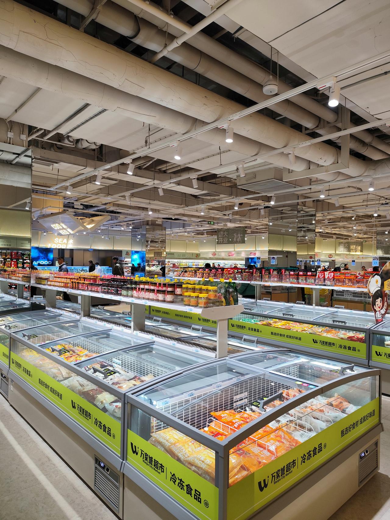 西安的超市越来越卷了:传统超市纷纷倒闭,新型超市层出不穷,不信来看看北郊新开的这家新超市——面积超大,审美到位,甚至比爆改后的永辉超市更值得一逛。这家名为万家城的超市位于渭滨路卜蜂莲花购物中心,在抖音刷到开业活动后,就来围观一下,发现确实比传统超市有颠覆感。   进入超市之后,发现不管是广告牌还是储物柜,都充满设计感,颜色搭配也都很和谐,看起来十分舒服。进入购物区,区域划分合理,价格中等居多,但是商品的颜值都很高,摆放的也井井有条,哪怕是腊肉、腊肠这种没什么美感的食物都摆放的与众不同。   卖场内甚至没有此起彼伏的大喇叭,就算是逛逛不买,心情也很愉悦。由于卖场面积很大,走马观花地逛了一圈,随便拍了几张,还有点意犹未尽。周末想逛逛超市的,不妨来这里看看!