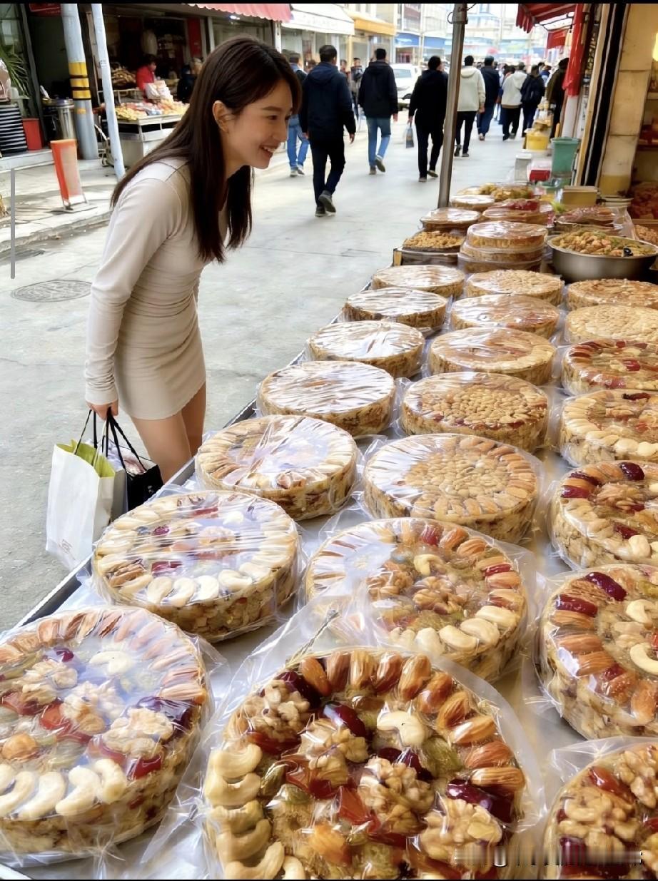 姑娘,你别害怕,这切糕真的不贵 看到这个姑娘蹲在切糕摊前两眼放光又有点犹豫的样子,我直接笑出声。换作十年前,谁见了切糕不得绕着走?毕竟“一刀下去一套房”的阴影,至今还在不少人心里。 现在再看这些切糕摊,透明塑料膜裹得明明白白,核桃、腰果、红枣铺满整个圆饼,老板会主动告诉你“按块卖,小份15块钱就能尝鲜”。一刀切下去,分量给得足足的,再也没有“天价”陷阱。 其实新疆切糕本身就是坚果和糖熬出来的硬货,过去的“刺客”标签,更多是信息差和个别乱象搞坏了名声。如今大家越来越懂行,老板也越来越实在,切糕终于回归成了地道的街头美食。