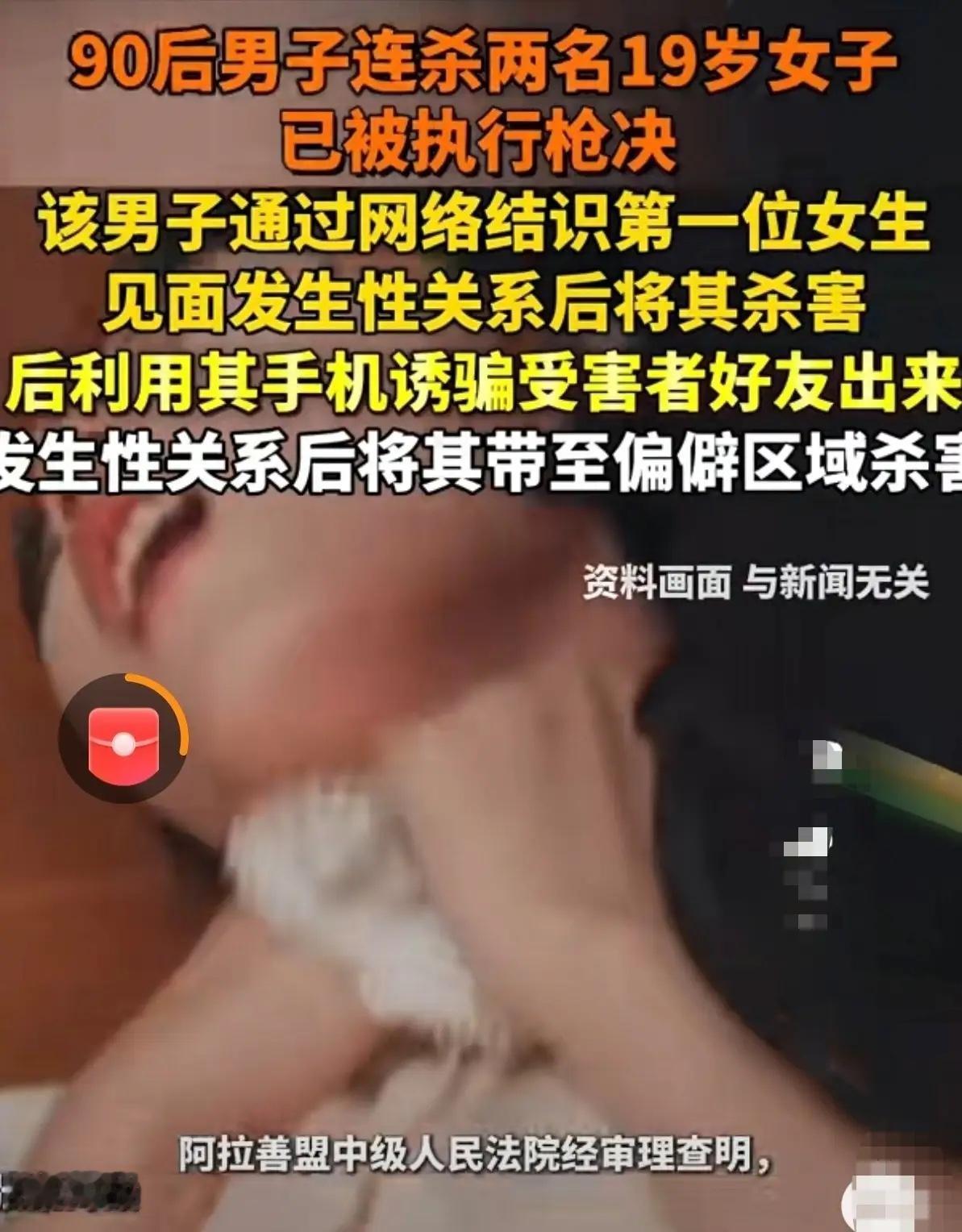 内蒙古阿拉善,34岁男子把19岁女孩约到住处,俩人发生关系后,俩人厮混了几日,女孩觉察到不对劲 想走却被男子强行拦下,还被限制了人身自由。 内蒙古阿拉善一声枪响,震碎了寒冬的寂静!36岁恶魔张某海被执行枪决,倒在旷野的尘埃里,可这声迟来的枪响,终究换不回两个永远定格在19岁的鲜活生命。 更填不满受害者家庭那道血肉模糊的伤口!这场跨越一年多的罪恶,从一场看似普通的网络奔现开始,最终演变成连夺两命的惨剧。 不仅撕开了人性最深的黑暗,更让我们看清了现实里那些无法用刑罚抹平的伤痛。 谁能想到,一次简单的网络相识,会成为两个花季女孩生命的终点。张某海通过网络结识19岁的李某,几句甜言蜜语,就把女孩约到了住处。 可这份看似的亲密,不过是他精心伪装的假象。仅仅相处两天,李某就察觉到了这个男人的不对劲,那令人窒息的控制欲,让她只想赶紧逃离。 可她怎么也没想到,提出离开的那一刻,就已经踏入了死亡的边缘。 张某海瞬间撕下了温柔的面具,露出了狰狞的面目,抢走手机、锁死门窗,一套动作干脆又狠戾,直接将李某非法拘禁。 这哪里是什么恋人,分明是披着人皮的恶魔,把一个十几平米的房间,变成了囚禁女孩的人间地狱。 接下来的三天,李某在恐惧中度过,她拼尽全力想要求救,可那道发出的求救信息,不仅没带来希望,反而成了催命符。 发现求救信息的张某海,心里只有一个念头,那就是掩盖自己的罪行,他没有丝毫的犹豫和愧疚,选择了最极端的方式,杀人灭口。 为了逃避非法拘禁的惩罚,他亲手结束了一个19岁女孩的生命,那一刻,他的人性早已泯灭,只剩下无尽的罪恶。 本以为这已经是极致的黑暗,可谁能想到,这仅仅是这场惨剧的开始。 李某的生命戛然而止,可她的手机,却成了张某海猎杀下一个目标的工具 他像个阴魂不散的幽灵,操控着死者的手机,在通讯录里锁定了李某的闺蜜朱某,另一个同样19岁的女孩。 他利用闺蜜间最天然的信任,又用高额好处费当诱饵,让朱某以为只是去见好友,毫无防备地踏入了他设下的陷阱。 这一次的张某海,更加冷静也更加残忍,没有丝毫的慌乱,将朱某约到住处后,又驾车把她带到了宗别立镇的荒野,在那个荒无人烟的地方,再次举起了屠刀。 仅仅一个月的时间,两个19岁的女孩,相继惨死在他的手里,如花的青春还没来得及绽放,就永远凋零在这片土地上,而这一切,仅仅是因为一个恶魔的自私与残忍。 天网恢恢,疏而不漏,阿拉善盟中级人民法院的判决,给了受害者家庭一个交代,张某海因故意杀人、非法拘禁两项罪名,被依法判处死刑。 面对这个结果,他选择了沉默,没有上诉,或许从他接连杀害两个女孩的那一刻,就知道自己终将有这样的结局。 今年1月23日,最高人民法院的核准书下达,张某海被执行枪决,一声枪响,终结了他的罪恶,也让公众的愤怒有了一丝平复。 在如今的司法实践中,枪决已经很少见,可对于张某海这样的极恶之徒,这样的雷霆手段,才是对罪恶最有力的回击,也是对受害者最基本的告慰 可即便如此,法律的惩戒再严厉,也无法挽回逝去的生命,更无法弥补受害者家庭所承受的伤痛。这也是最残酷的现实。 刑事案件的附带民事诉讼里,精神损害赔偿往往难以实现,凶手伏法了,可家属能拿到的,或许只有一张薄薄的丧葬费单据。 如果凶手名下没有任何遗产,那这张单据,最终也只是一张空头支票,连最基本的物质补偿都无法实现。 对于两个女孩的家庭来说,失去的是朝夕相处的亲人,是永远无法再见的牵挂,那些空荡荡的房间,那些定格在19岁的照片,是一辈子都无法愈合的伤口。 这份伤痛,永远不是一句“凶手伏法”就能抹平的,这种刑罚与伤害的不对等,才是本案留给社会最沉重的思考 这从来都不是一句简单的“交友需谨慎”就能概括的,这是一次对人性深渊的直视,也是对现实的深刻拷问。 网络让人与人的连接变得简单,可也模糊了善与恶的界限,那些隔着屏幕的甜言蜜语,背后可能藏着无法想象的黑暗。 我们总说法律会严惩罪恶,可严惩之后,那些被伤害的人,那些破碎的家庭,又该如何自愈? 这声枪响终结了罪恶,却留下了无尽的反思,关于人性,关于法律,也关于我们每个人的自我保护。 两个花季女孩的逝去,是所有人心中的痛,而这场惨剧也给所有人敲响了警钟。 在网络发达的今天,我们该如何保护自己,避免踏入陌生人设下的陷阱?面对这样的悲剧,除了谴责凶手,你觉得我们还能做些什么来规避这类风险?