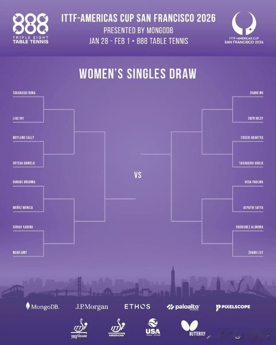 🏓2026美洲杯🏓 女单正赛签表 🇧🇷高桥·布鲁娜、🇺🇸王艾米 上半区 🇨🇦张默、🇺🇸张安 下半区