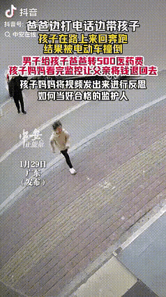 “获得了全网点赞!”广东,一孩子在路边被电动车撞倒,妈妈看完监控后,竟让爸爸把500元的赔偿款,退了回去,网友:这妈妈太明事理了,值得大家学习! 视频中,孩子爸爸带着娃在路边走,一边打电话一边看着孩子,孩子在人行道上来回奔跑,突然就冲到了路边。 这时,一辆电动车开了过来,来不及避让,就把孩子撞倒了,意识到孩子被撞,爸爸一下子急了,对着骑手怒吼:“骑那么快干嘛!” 孩子被撞倒后,看着没什么大碍,骑手当场赔了500元医药费,让孩子去医院检查,当时妈妈正在家里做饭,不清楚外面发生的情况,也就没多说什么。 等晚上妈妈忙完,心里总觉得不踏实,就找出了事发时的监控视频,这一看才发现,原来是爸爸打电话分了心,没看好来回跑的孩子,才导致了意外,骑手也不是故意的。 看到监控里的真相,妈妈立刻让爸爸把500元赔偿款退给了骑手,还跟骑手说明了情况,让对方别往心里去。 妈妈说:“大家赚钱都不容易,主要是我们没看好孩子,不能让别人买单。” 之后,妈妈把这段监控视频发了出来,还反思自己和爸爸没尽到监护责任,想提醒其他家长带娃时别分心。 很快,这段视频就传到了网上,无数网友们纷纷评论。 有网友说:“这妈妈太通情达理了!遇事不怪别人,先找自己的问题,太难得了!” 也有网友说:“爸爸带娃打电话分心真不行,还好孩子没事,妈妈的做法太圈粉了!” 还有网友说:“现在好多人遇事先追责,这位妈妈还主动退钱反思,给孩子做了好榜样!” 要我说,孩子没受伤就是万幸,妈妈的做法真的让人暖心。 遇到这种事,她没有被情绪冲昏头,而是靠监控弄清真相,主动承担起监护责任,这以后也对孩子成长有很大的帮助,至少让孩子知道,做错了事要勇于承担,不能随便怪别人。 带娃本来就不能分心,希望所有家长都能引以为戒,看好身边的孩子。 对此你们怎么看?