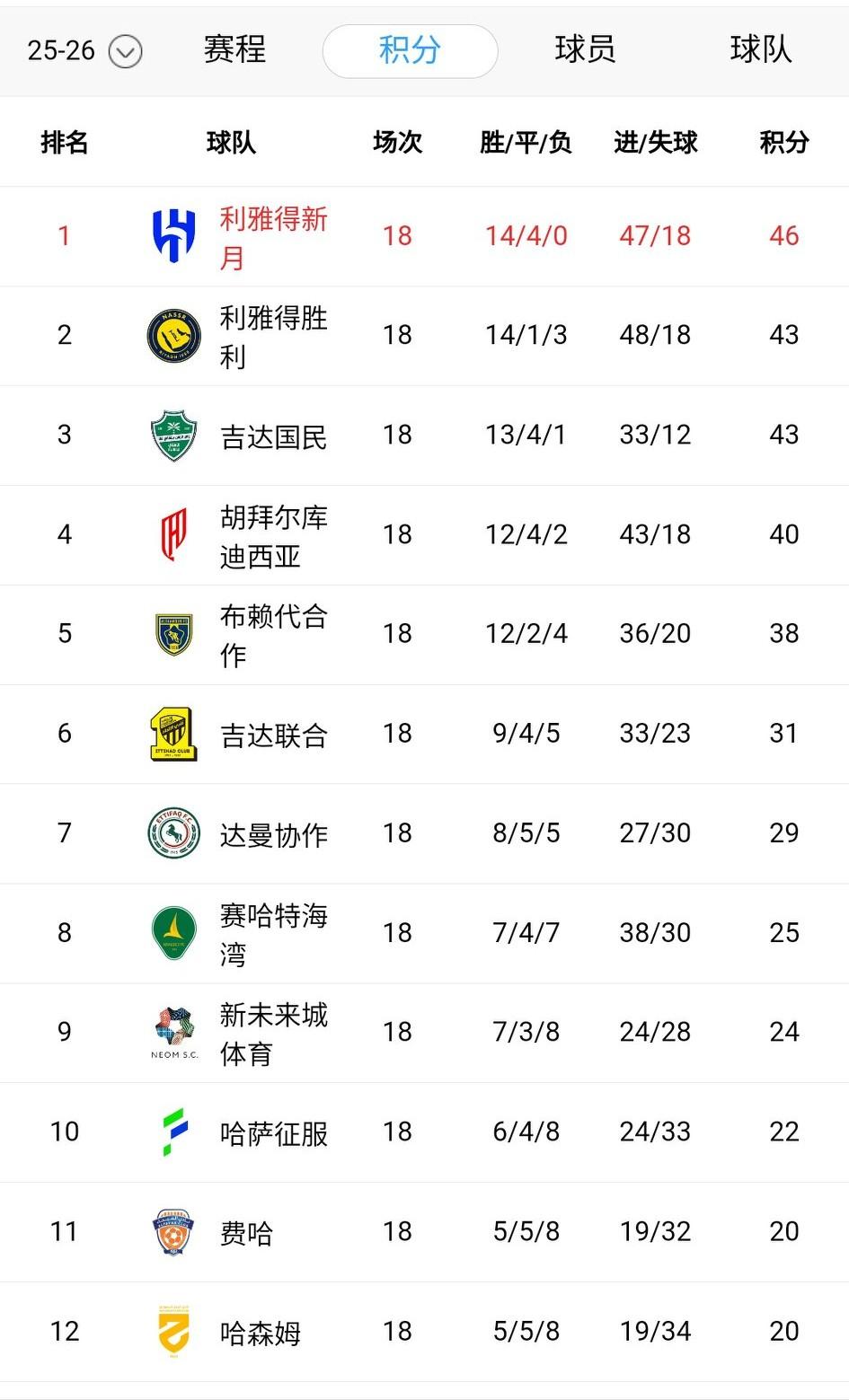 老天都在帮C罗!沙特联赛,利雅得新月遭遇两连平,利雅得胜利两连胜,新月积分优势仅剩3分。 下一轮联赛,新月将直接对阵排名第三的吉达国民。如果两队战平,而利雅得胜利再次获胜,利雅得胜利将以微弱优势重返榜首。 利雅得体育1-1新月 库迪西亚2-2新月 利雅得胜利1-0布赖代合作 拉斯永恒0-3利雅得胜利