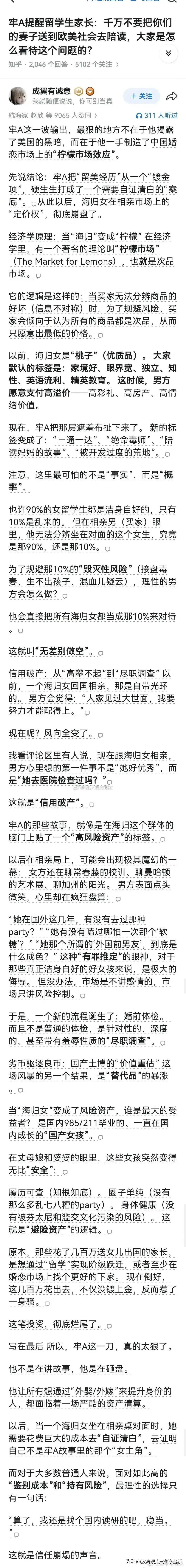 信任一旦崩塌, 就一定会冲击原有的认知, 留学生的美丽光环, 正在一步步破裂, 下一步呢? 谢谢牢A