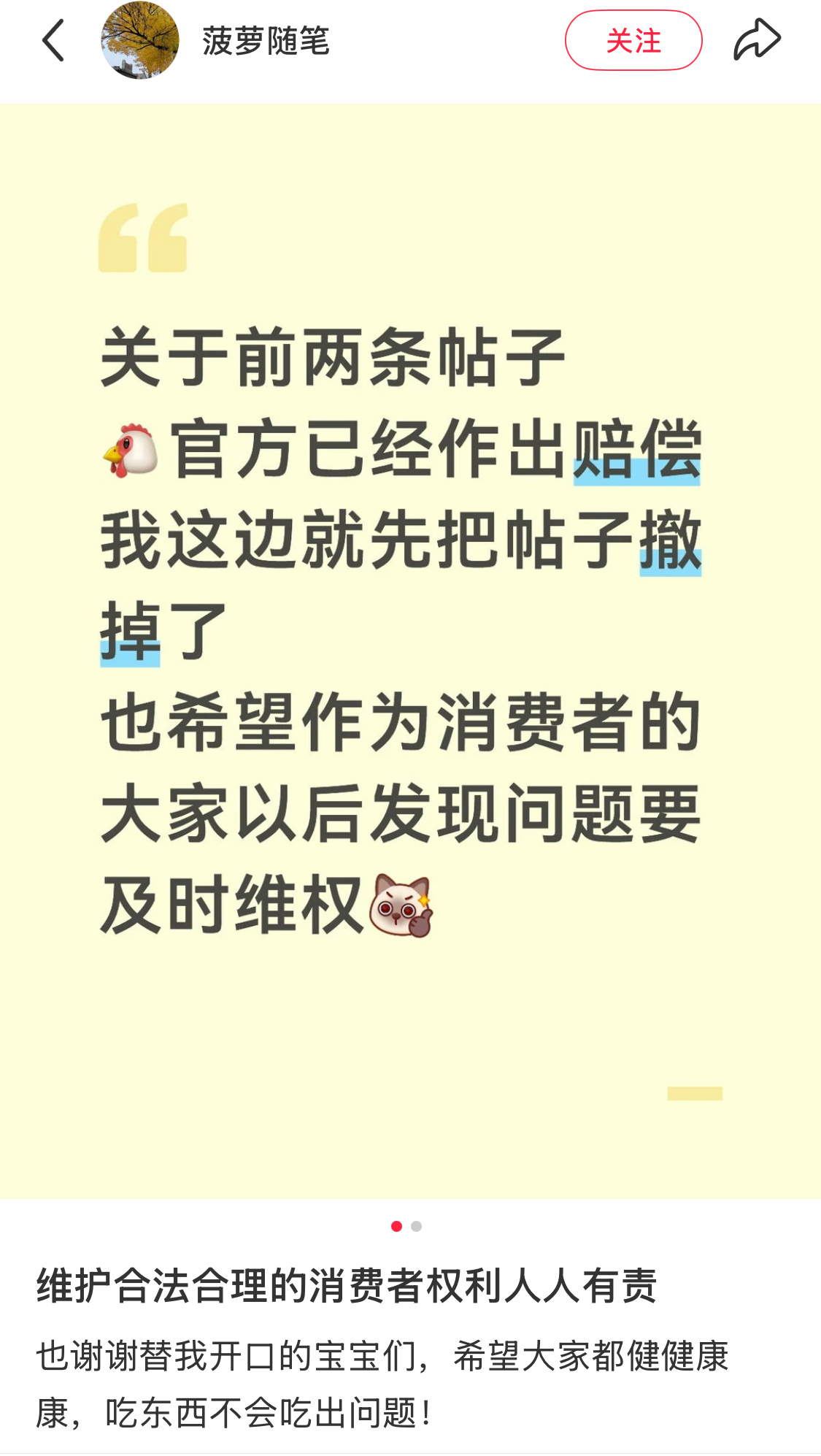 王小卤鸡爪被曝发霉变质刚好刷到原帖了,品牌第一时间没有甩锅,已道歉已赔偿。态度算是积极解决问题的,后续等等调查,看是什么原因吧。食品安全是重中之重,王小卤这么大个牌子,应该是有一套成熟流程的