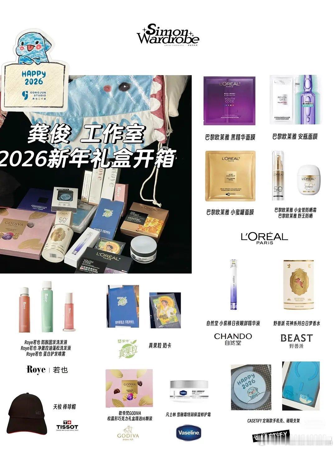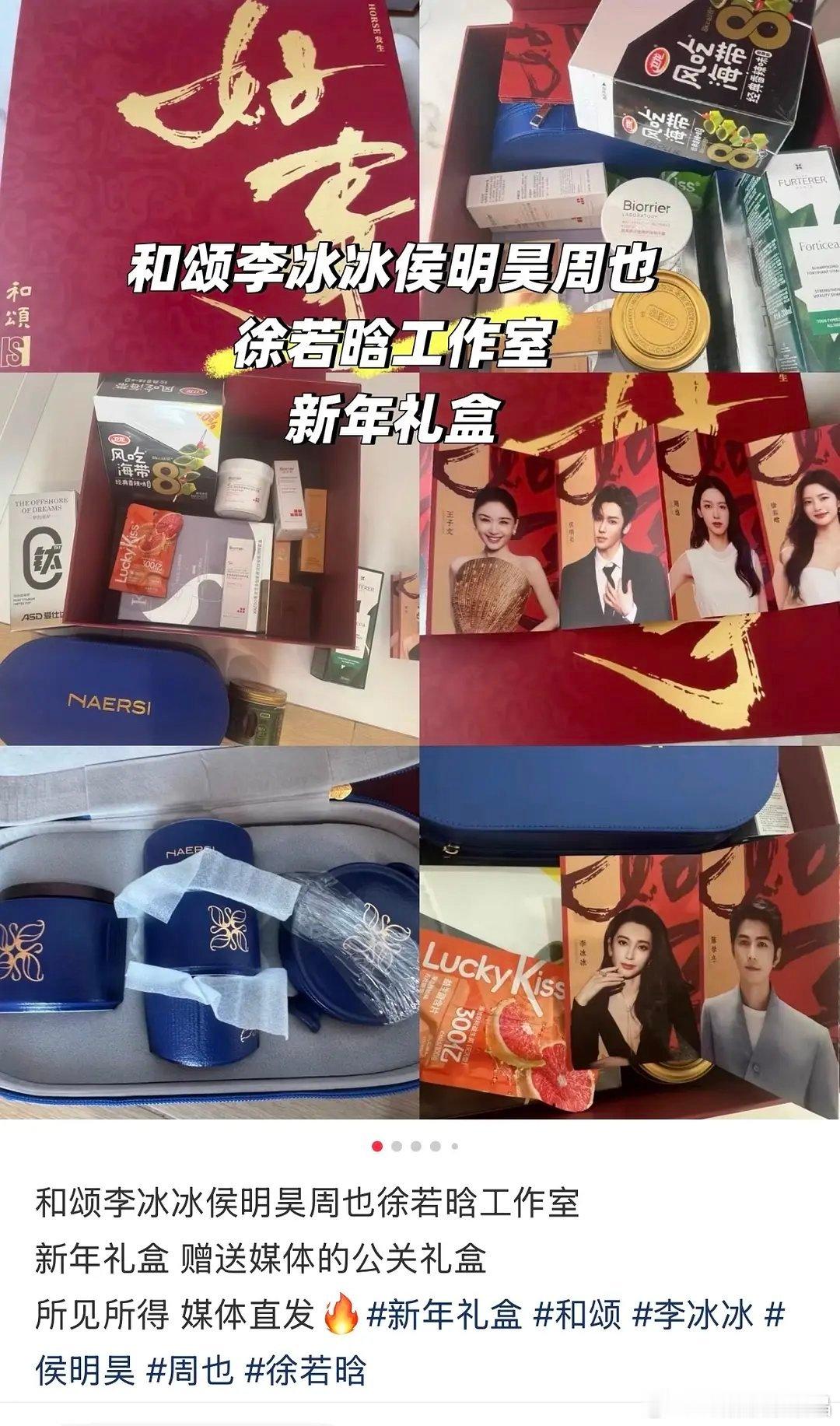 各个明星工作室的礼盒,包括:肖战、鹿晗、东申未来、众星时代、和颂、谭松韵、檀健次、龚俊、孟子义、华晨宇。