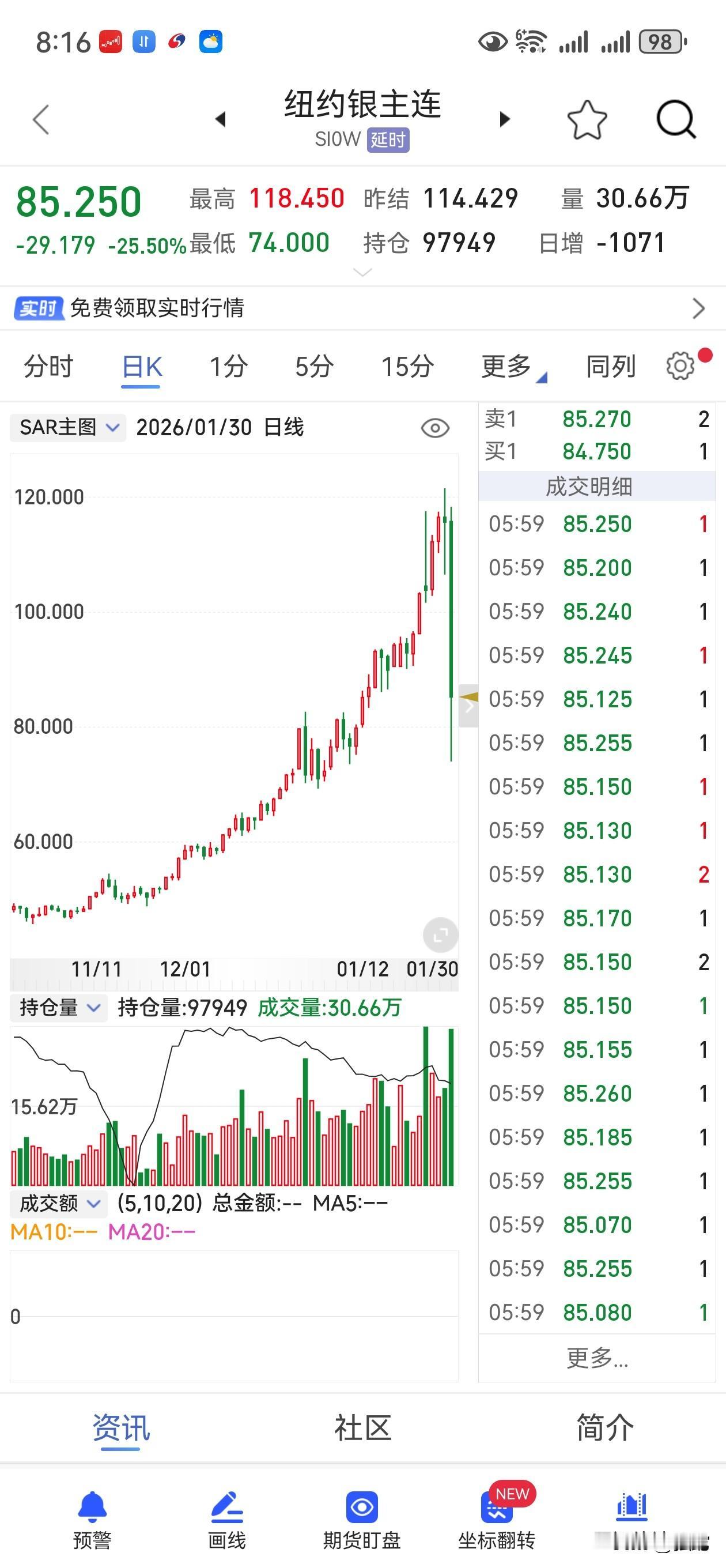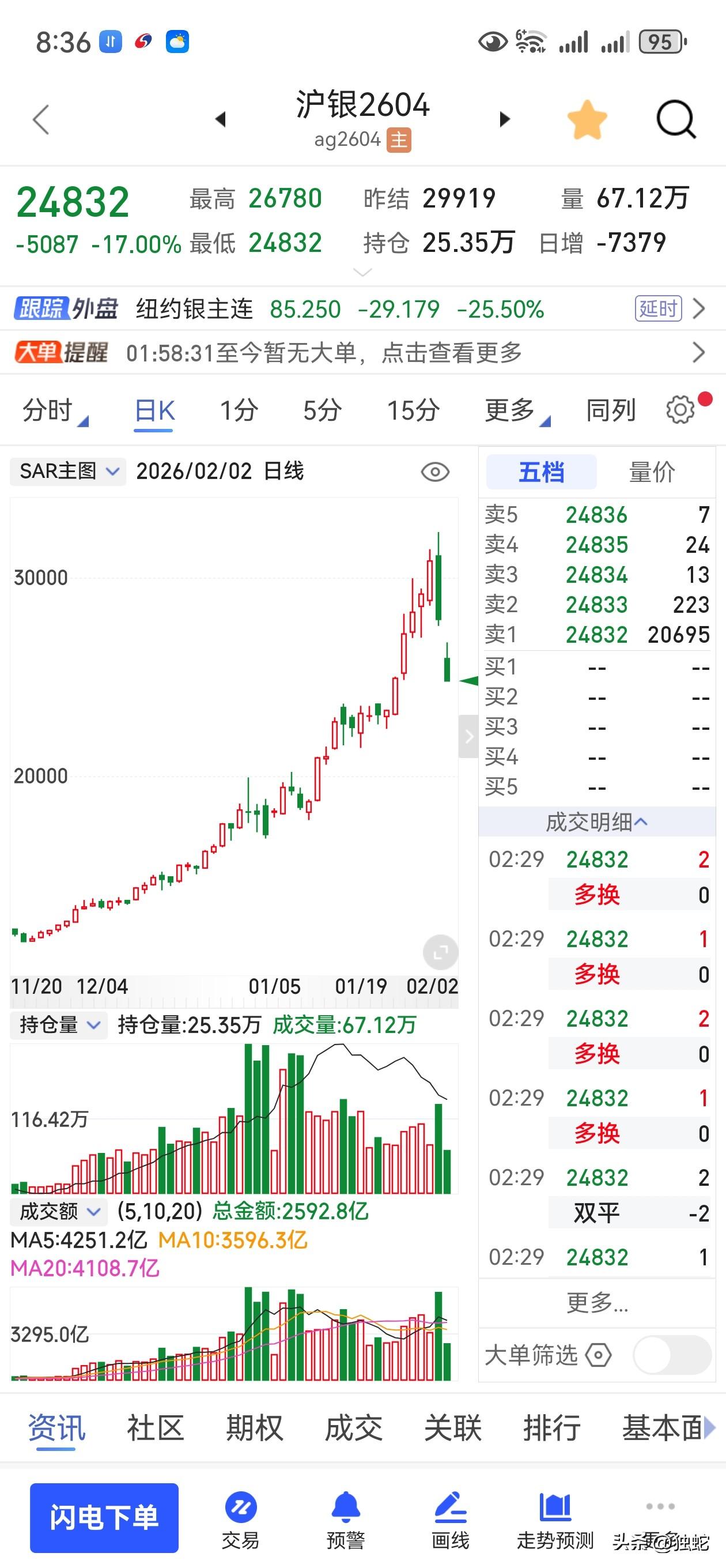 WOW!提前两天跑了!这种暴跌,下周如何操作?看碳酸锂是否企稳(我之前就说碳酸锂是这次金属暴涨的风向标),白银短线可博反弹,但再创新高很难(心里讲很少人敢跟进),长线还是见底继续看多黄金(美元空则多黄金)!另,未来全球经济预期会很差,美元必大幅降息,放水通胀大概率,那么,对于国际长线资本,买美债(各国开始大额抛售,日债利率快速上升会带崩美债),美股(历史高位横盘目前看不到新热点),贵金属(暴涨后大概率暴跌),黄金(已在高位)和房子(在历史低位),很明显买房子!(个人遇见,风险自负)