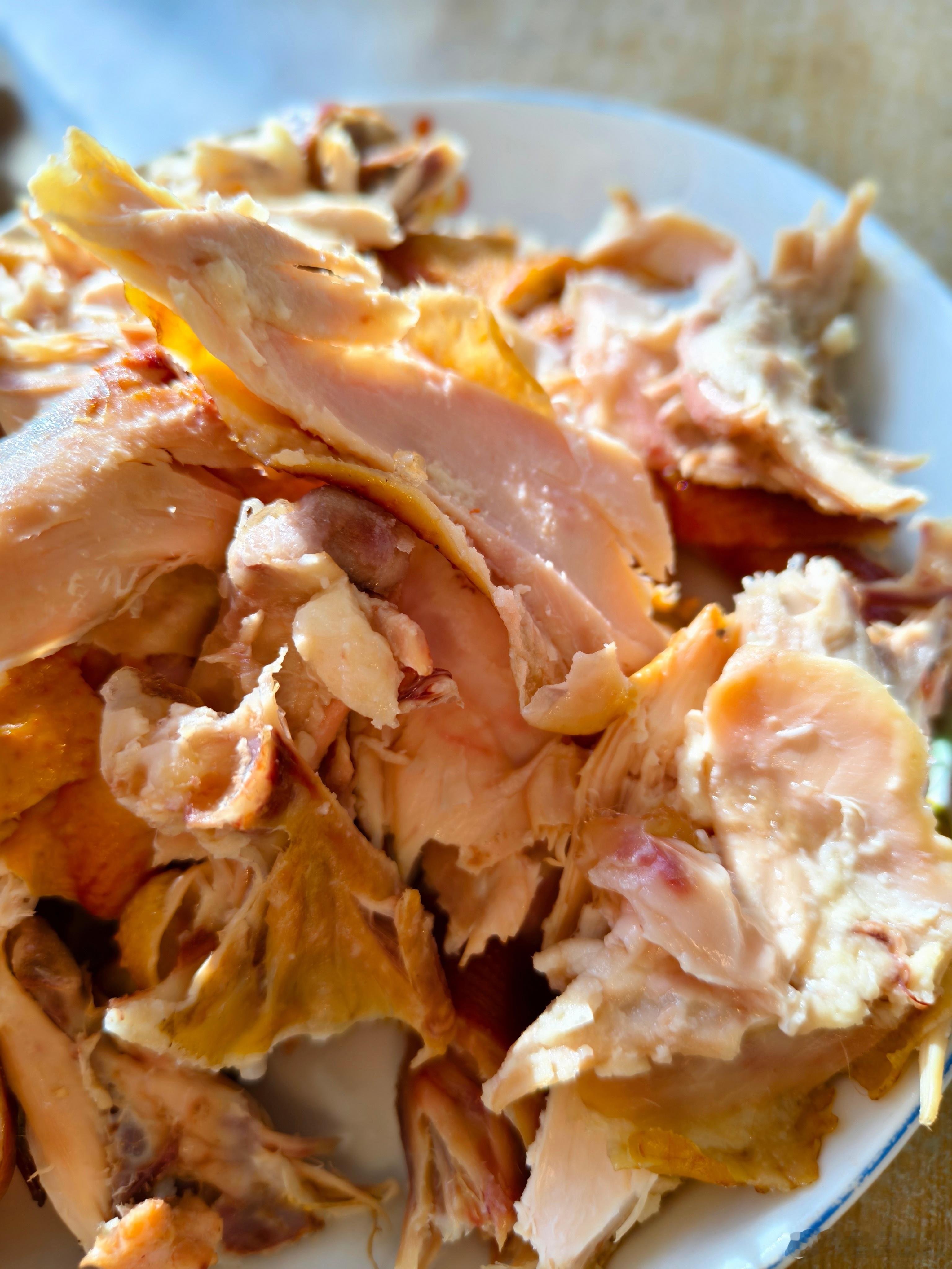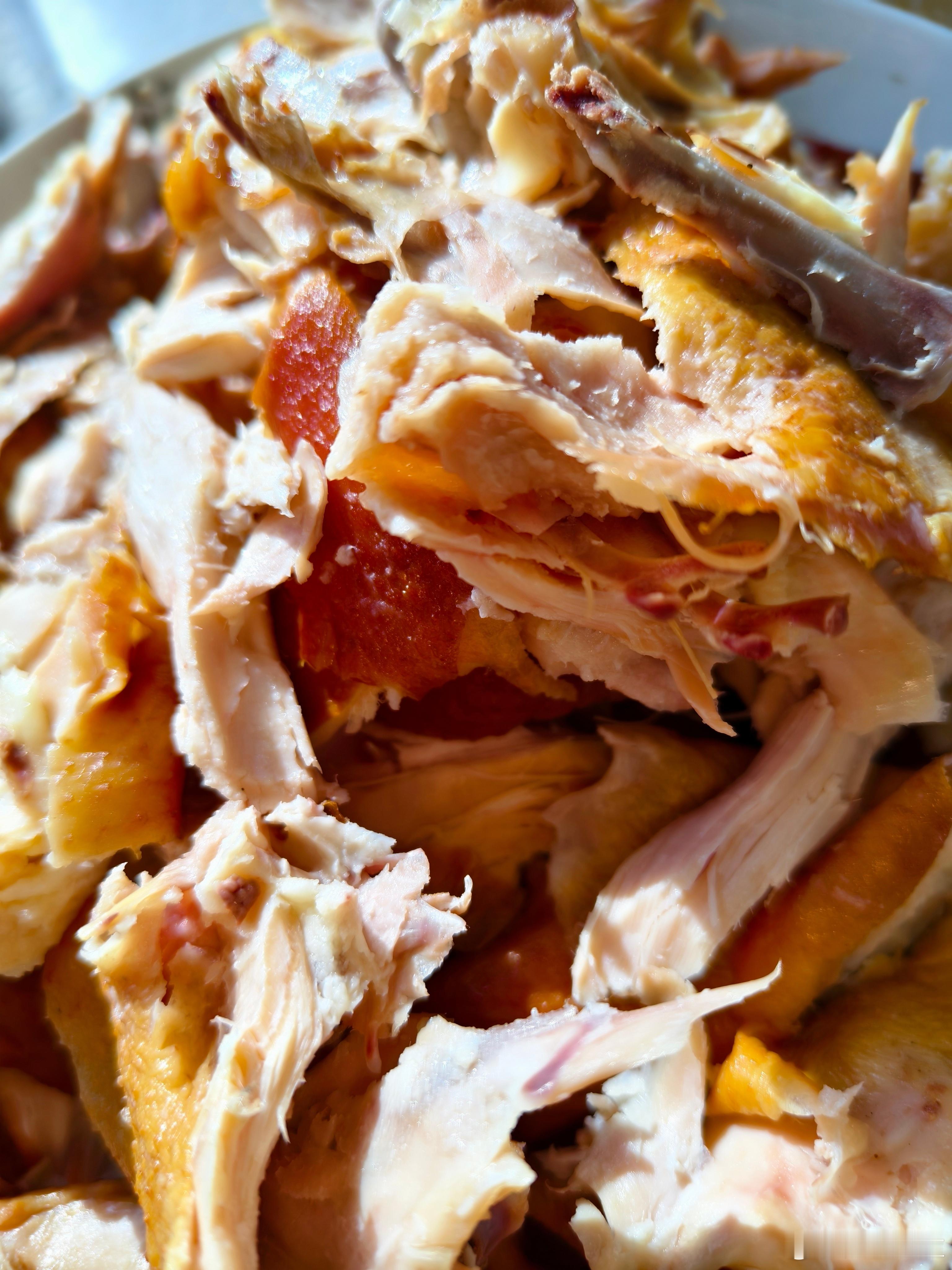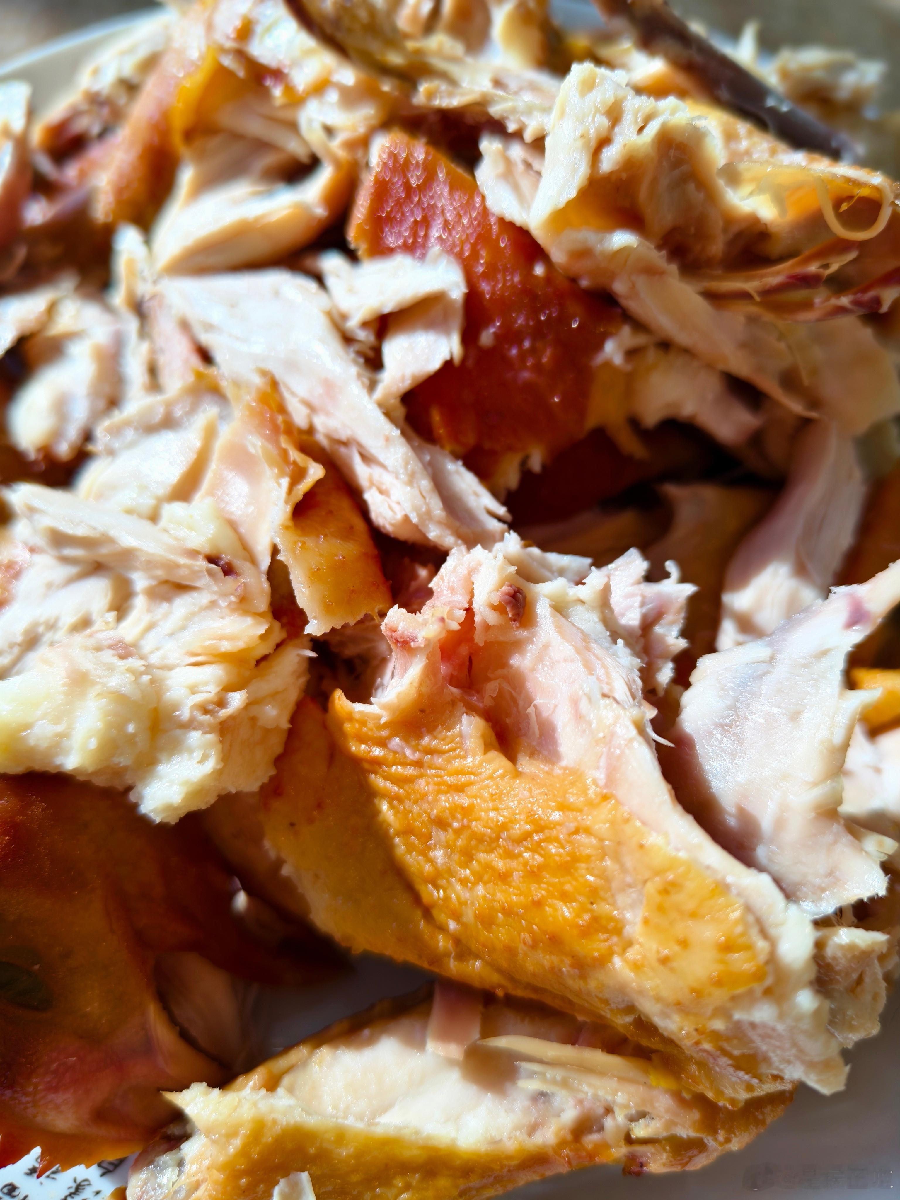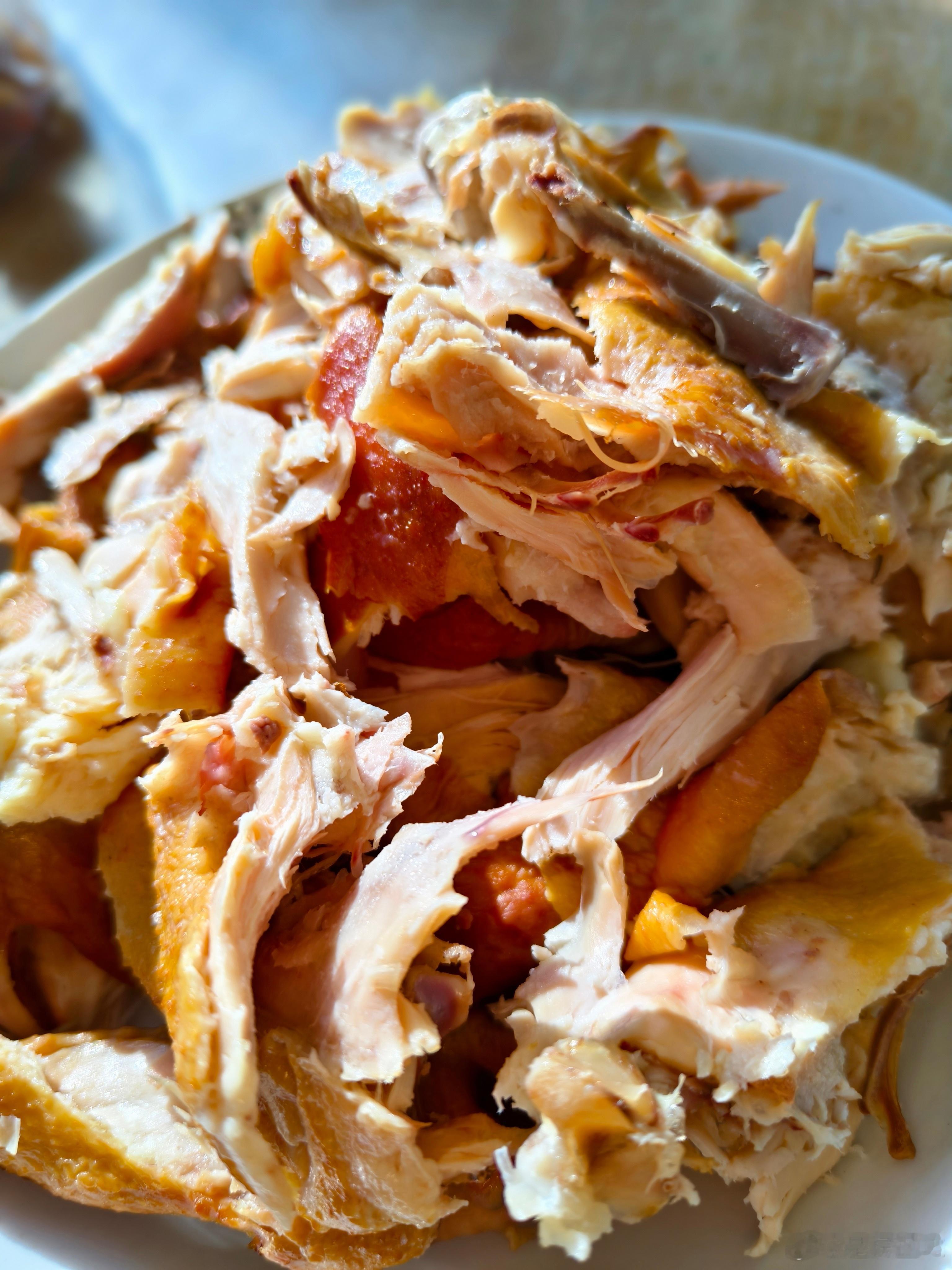 分别掰开各个部位,顺着肌理去撕开鸡肉,这样会更好嚼