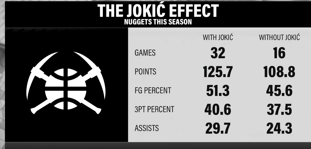 虽然没有约基奇的掘金依然不弱,但有约基奇的掘金是另一个级别。