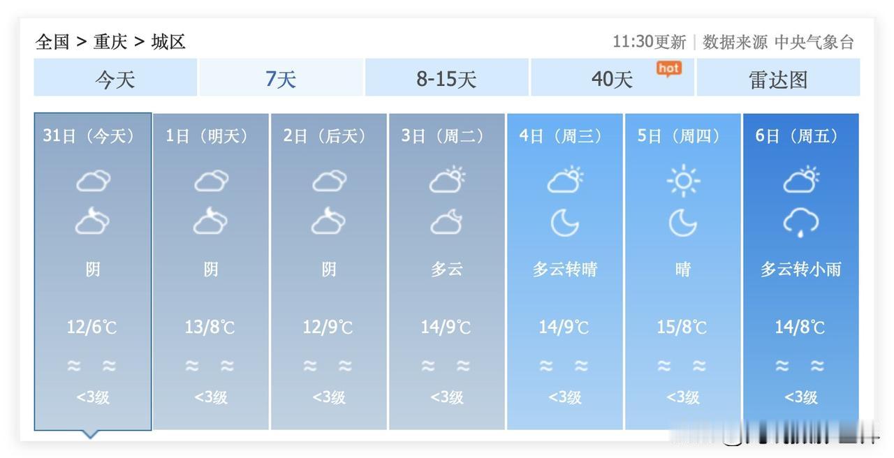 喜讯,1月31日,重庆主城区的降雨降温过程,结束啦!重庆,要回暖啦!太阳公公要回来啦!2月1日到14日,重庆主城区,最高气温21度,很少下雨,经常有太阳,妥妥的暖冬啦! 也是,2月14日,重庆主城区,最高气温21度,也不是什么稀奇事嘛! 好吧,2月1日到14日,重庆主城区,气温偏暖,阳光偏多,雨水偏少,非常温暖的暖冬! 嗯嗯,再过几天,重庆就要立春啦! 再过半个月左右,重庆的玉兰花、美人梅就要盛开啦! 开往春天的地铁,开往春天的轻轨二号线之佛图关美人梅,开往春天的轻轨三号线之巴南万达广场玉兰花,开往春天的地铁6号线之康庄……等等…… 2026年春天的脚步,越来越近啦!