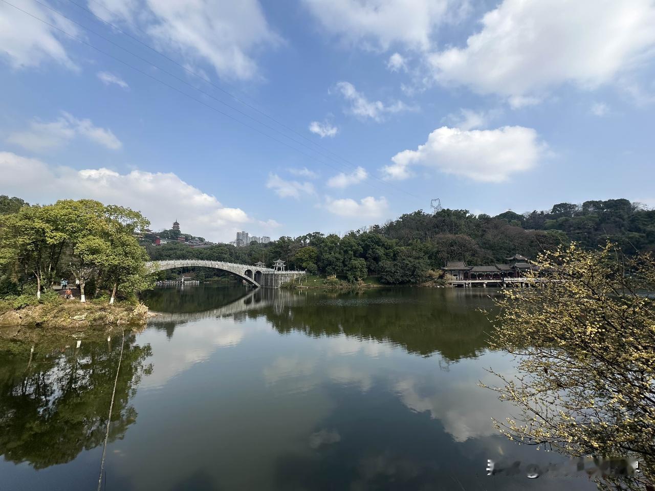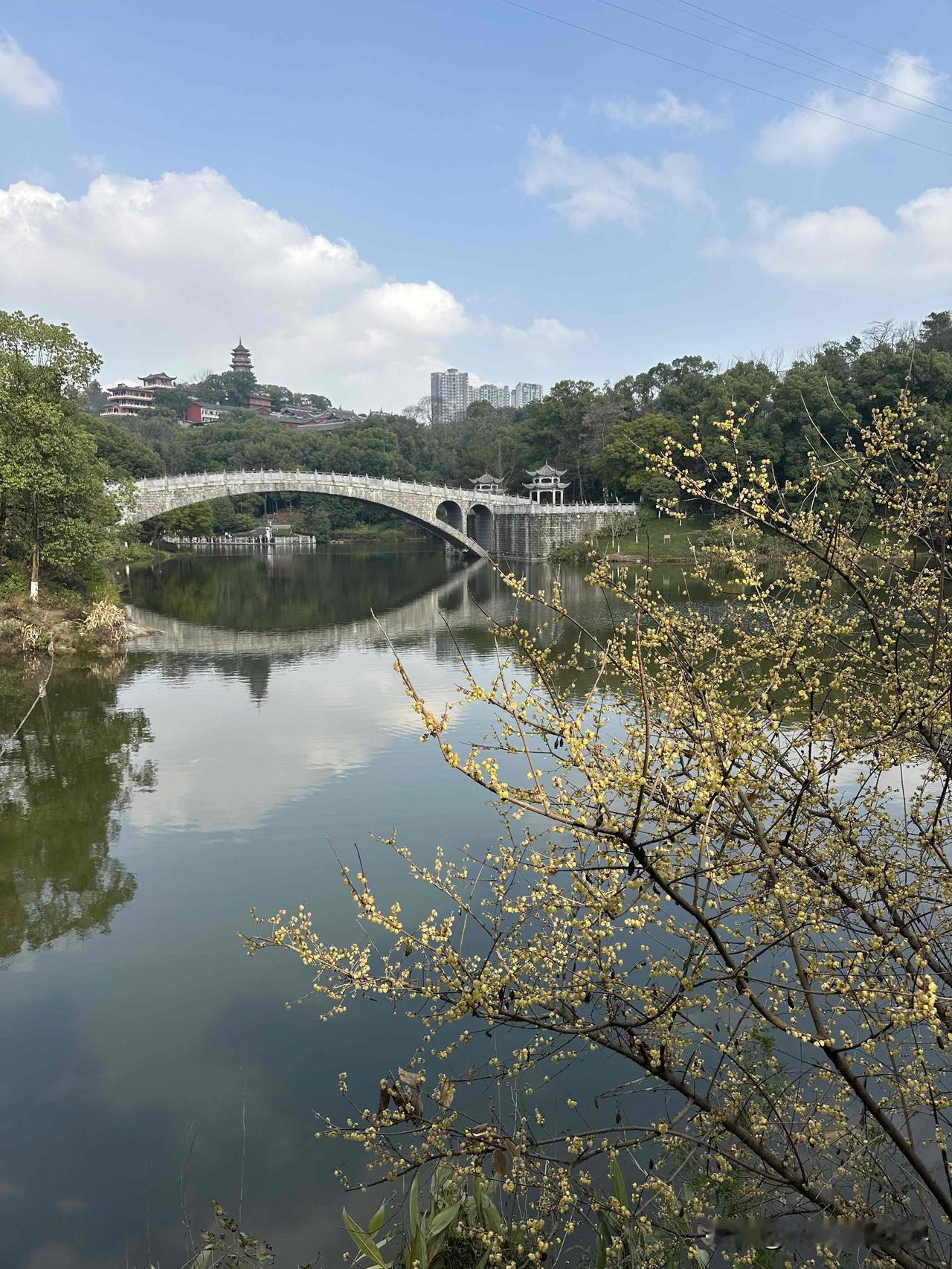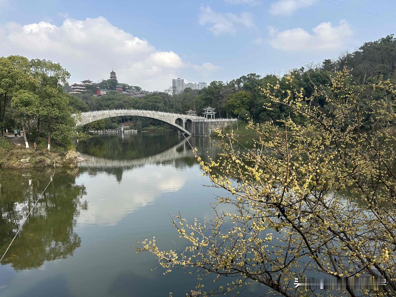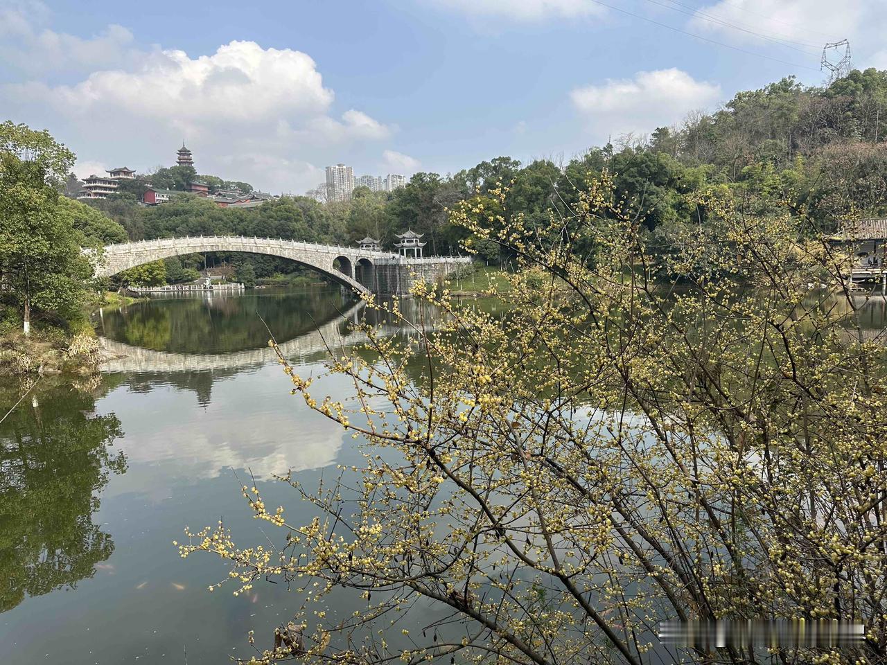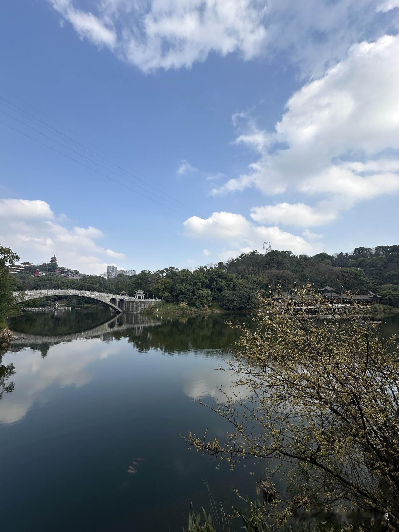 1月31日下午,重庆主城区出太阳了,而且令人惊讶的是,夏天才能见到的这种蓝天白云,今天居然在华岩寺华岩湖出现啦! 重庆的阴冷潮湿的湿冷的阴雨连绵的冬天,即将彻底划上句号啦! 嗯,华岩寺的腊梅花、蜡梅花,真的太美了!错过,再等一年!