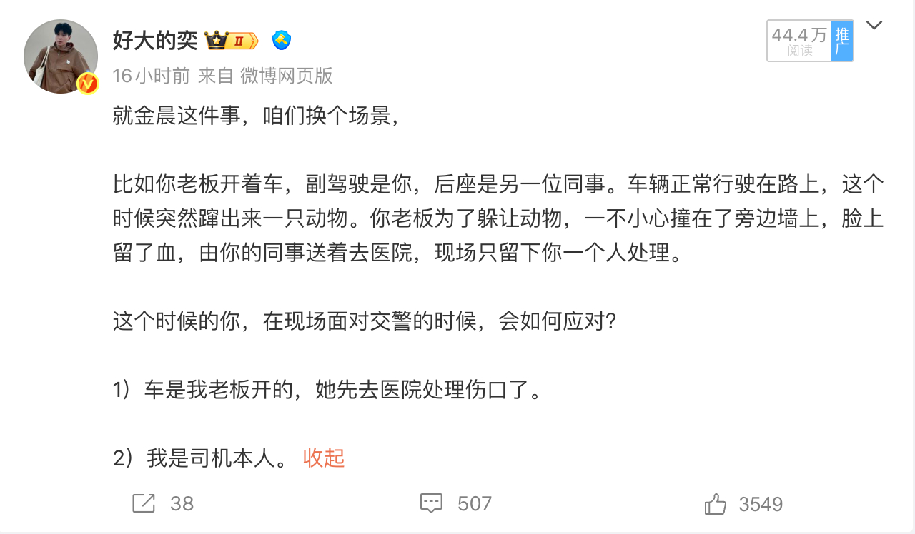 但我看到下面有条评论是这么说:如果你在职的公司正面临上市,你的老板因为这件事而耽误了公司上市,你会不会说自己就是司机。
