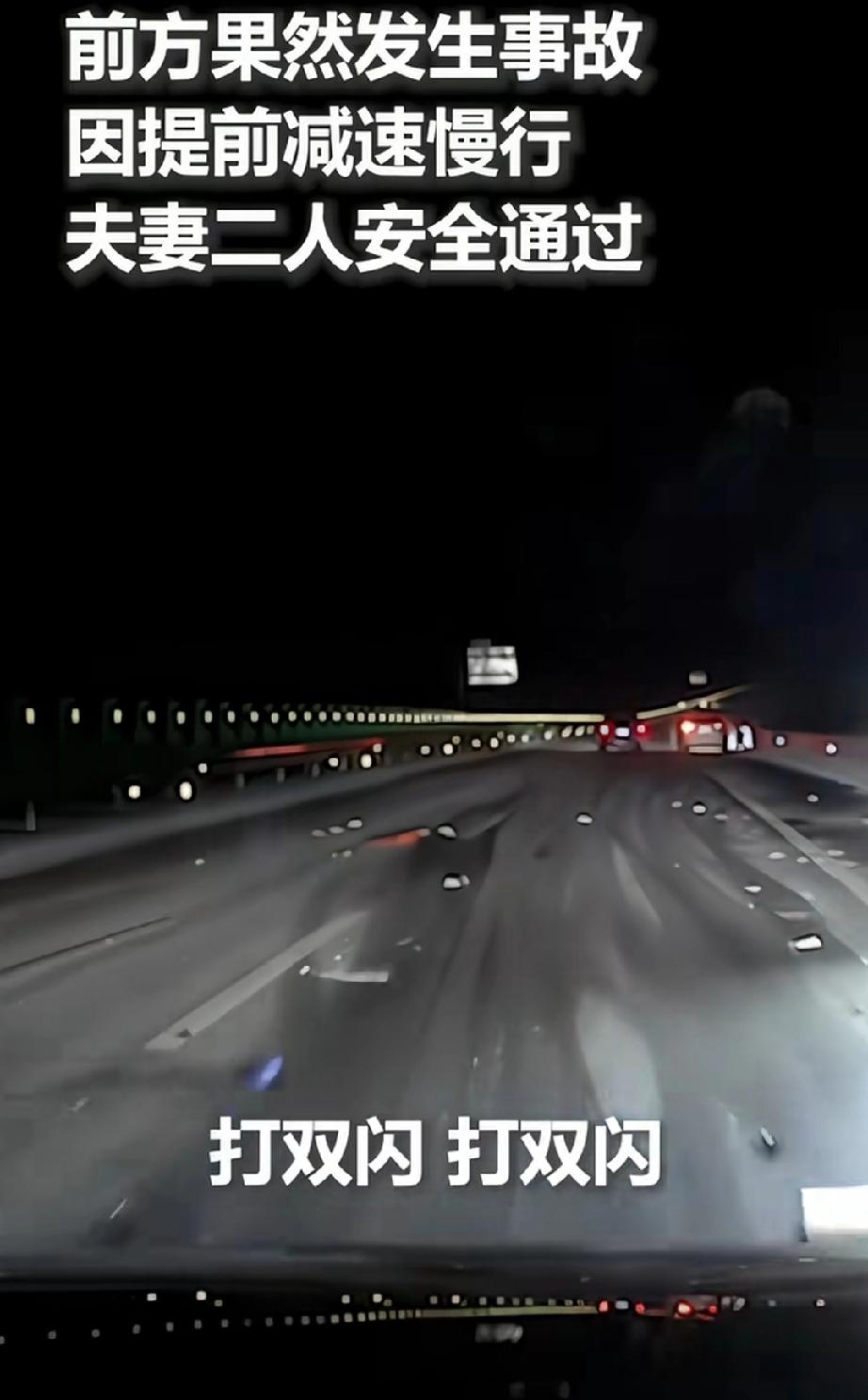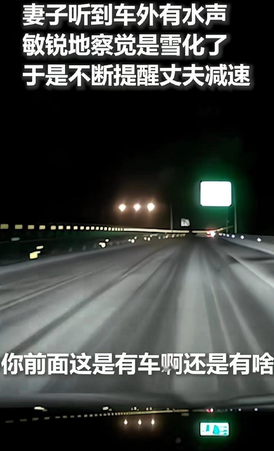 近日,吉林通化。男子夜间驾车上了高速公路,外面漆黑一片,路面上反射出车灯惨淡的光线。听着汽车在公路上呼呼而过的声音,坐在副驾驶的妻子忽然连连提醒,你开慢点。男子感觉车辆行驶好好的,并无异常,不解的问妻子为什么? 妻子:我都听到声音了。 男子:什么声音? 妻子听到了地面有水的声音,敏锐的觉察到是雪化了,她告诉了男子。 男子听从了妻子建议,将车速降下来。汽车继续行驶一段路,发现远处有异常情况,妻子又建议打双闪。男子驾车到了近处,才知道这里发生了交通事故。 行车要时刻保持安全意识,夫妻俩人凭着安全意识的警惕性,成功的避免了事故。 夫妻夜间高速行车凭超高意识避免事故安全驾驶 汽车雪天驾驶