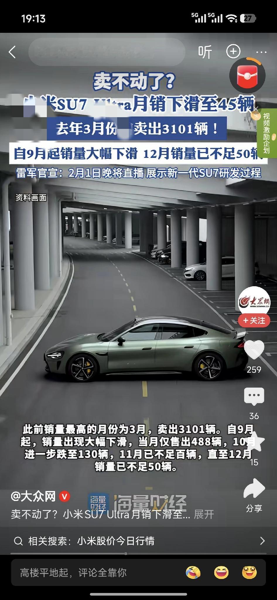 回购的25个亿还是见效的,股价已经稳住了。市场永远这么相信大咖的手法。轻轻一撩拨,就止住了痢疾。 想不通为什么。也许,吃亏是福吧! 12月份的销量准吗?马上1月份就出炉了,不知还有没有买家喜欢的? 最近短视频里,也没有绿化带,起火之类的视频了,估计会好一点吧!