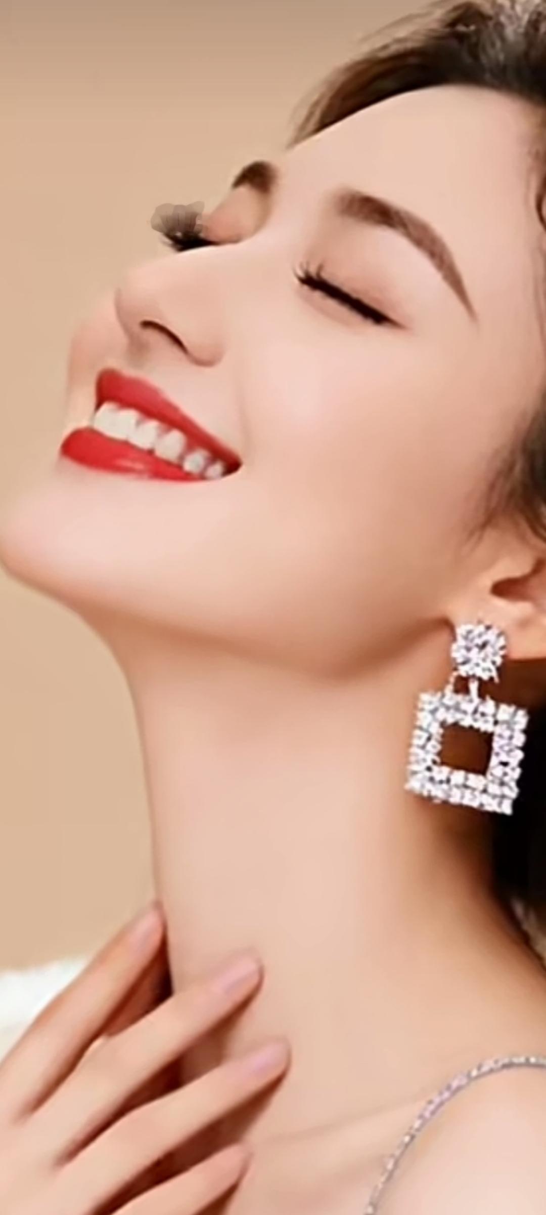 闪耀的钻石耳环,优雅的微笑,散发着迷人的魅力。