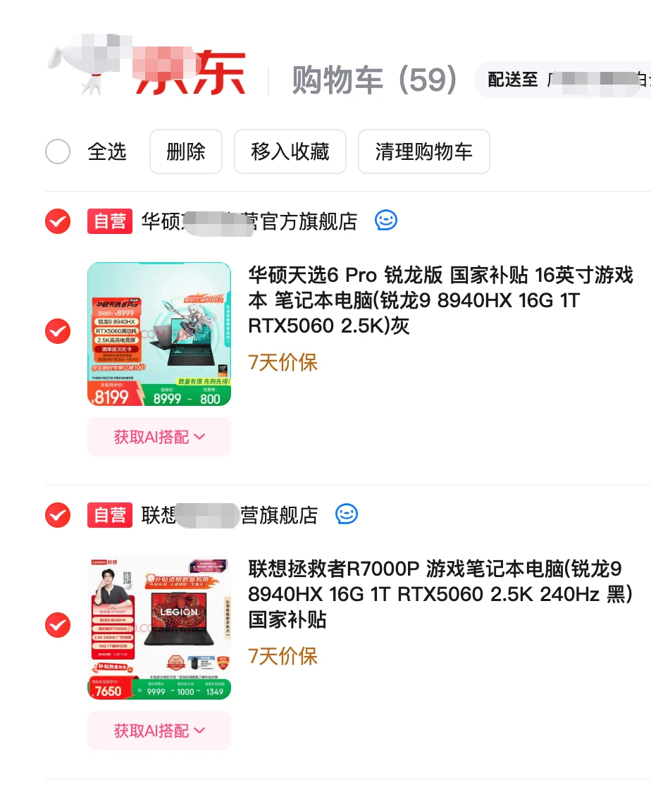 拯救者R7000P国补后7650,华硕天选6Pro是8199元,600的差价。