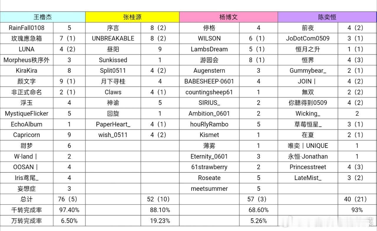 tg ryzz(wlj ybw zgy cyh)站姐千🧱万🧱拉表图一为破千破万数量以及完成率 图二为站姐图频数量(sj统计截止22点,人工拉表可能存在部分遗漏)