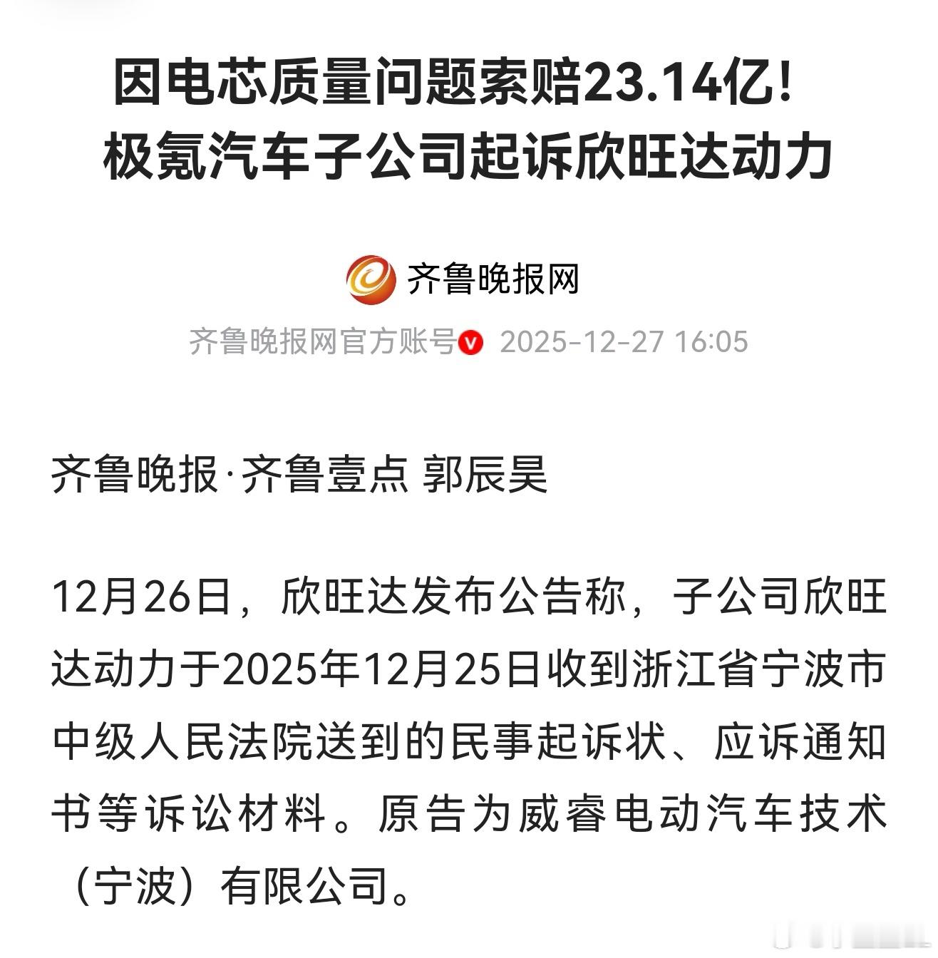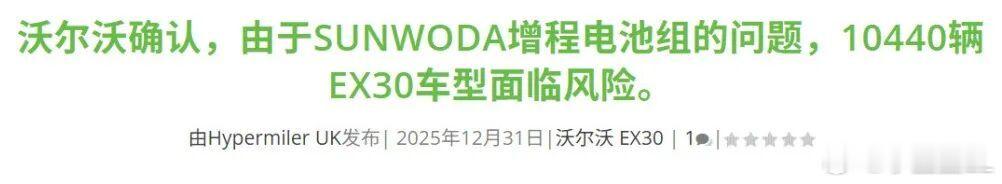 12月27日,极氪旗下的威睿诉讼欣旺达索赔23亿。12月31日,沃尔沃在英国召回1万多台EX30,原因是电池组的问题。1月19日,LG和松下联合成立的郁金香创新对欣旺达提起诉讼,原因是专利问题。