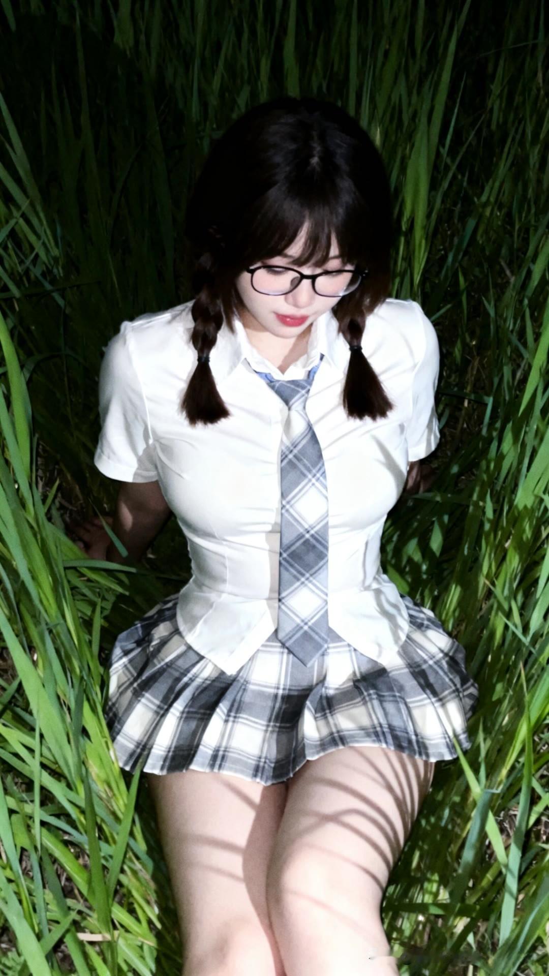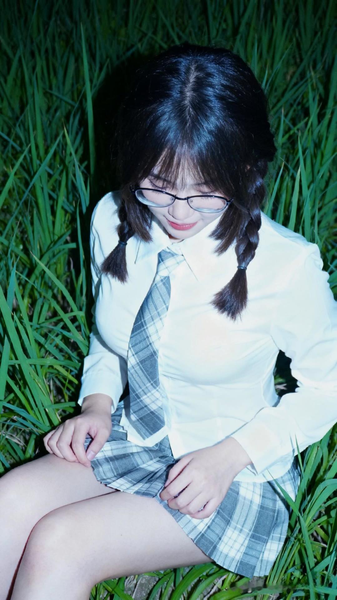 夜晚的少女,校园风穿搭,甜美可爱。时尚穿搭甜美系少女穿搭