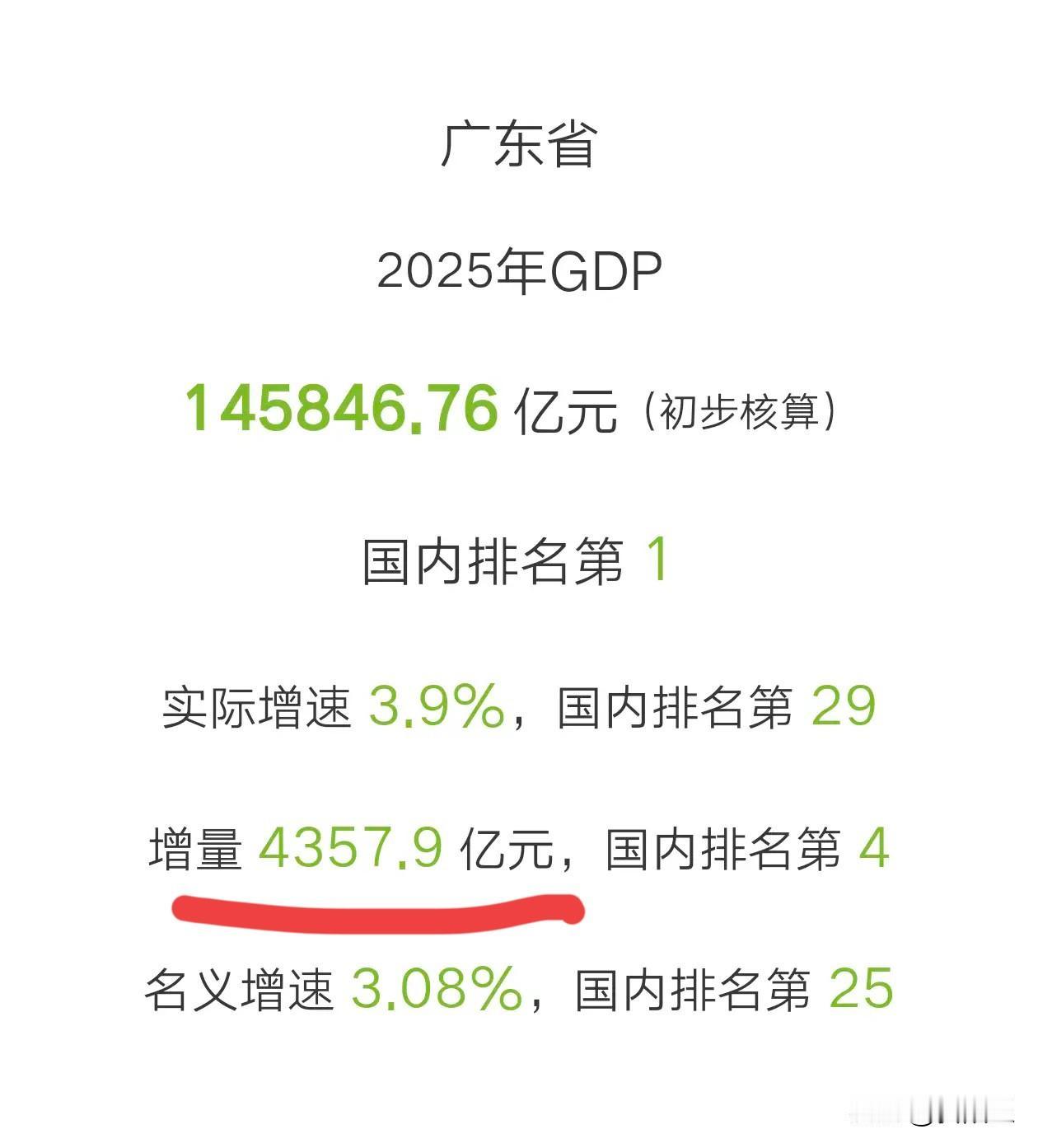 深圳真的凭一市之力撑住了粤老大下坠的速度!还好深圳顶住了压力,不然整个广东早就塌方了! 深圳早已接棒广州,成为广东经济的顶梁柱了!全省全年总量增加4357亿,深圳增量1929亿,单单一个深圳的增量,就是全省的44%,差不多一半啊!广州增量1007亿,两个城市的增量占了全省的近70%,也就是说其他19个城市增量只有1570,平均只有74亿,这里面还有几个城市是负增长的,据说甚至包括佛山!这差距可不是一般的大!其实整个广东的增速是低于全国平均水平的,排名倒数第二! 除了增量,总量也是!深圳总量38737亿,占了全省超过四分之一比重。广东除了非珠发展速度所牵绊之外,广佛也是一个很大因素,两座城市工业基础本来很好,但经济转型晚,也缺乏远见和魄力,一直没有成效,加上整体大环境低迷,简直雪上加霜!