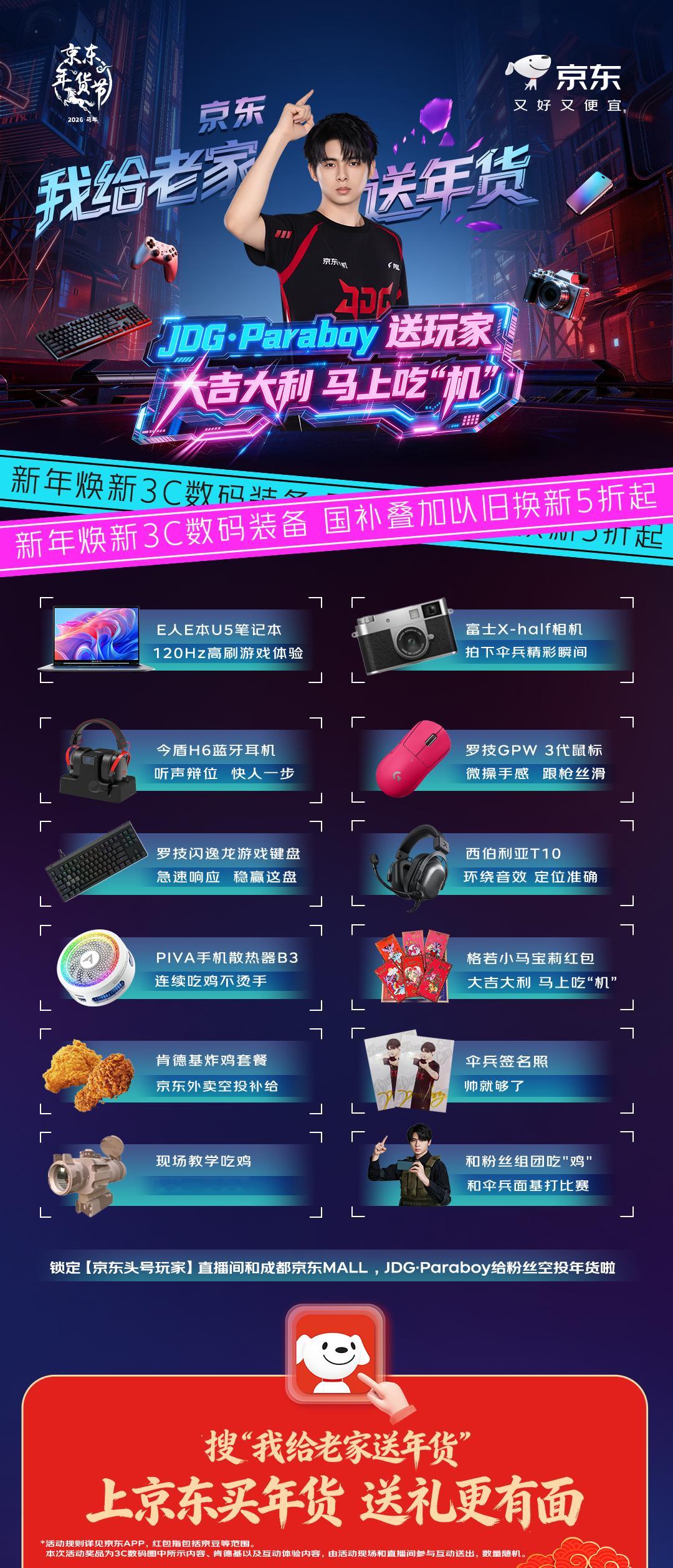 来咯来咯!伞兵直播间的宠粉福利来咯!3C数码奖品安排得明明白白,2月1日搜京东头号玩家蹲直播,互动抽奖赢好礼,手气好的宝子直接把大奖抱回家~吃鸡基础搭子就不基础