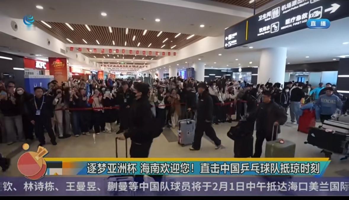 国乒到达海口——好多人接机好久不见的孙颖莎 王楚钦新年首秀加油! 2月1日中午,国乒队抵达海南, 终于看到孙颖莎和王楚钦啦, 好多人接机, 欢迎林诗栋回家的横幅最显眼, 小石头太可爱啦, 家乡人的骄傲! 现场气氛热烈, 大家看到莎莎出来那一刻, 眼泪都要流下来了, 好久不见,孙颖莎很好👍! 王楚钦还是那么帅气, 海岛少年林诗栋回家乡比赛, 支持林诗栋!