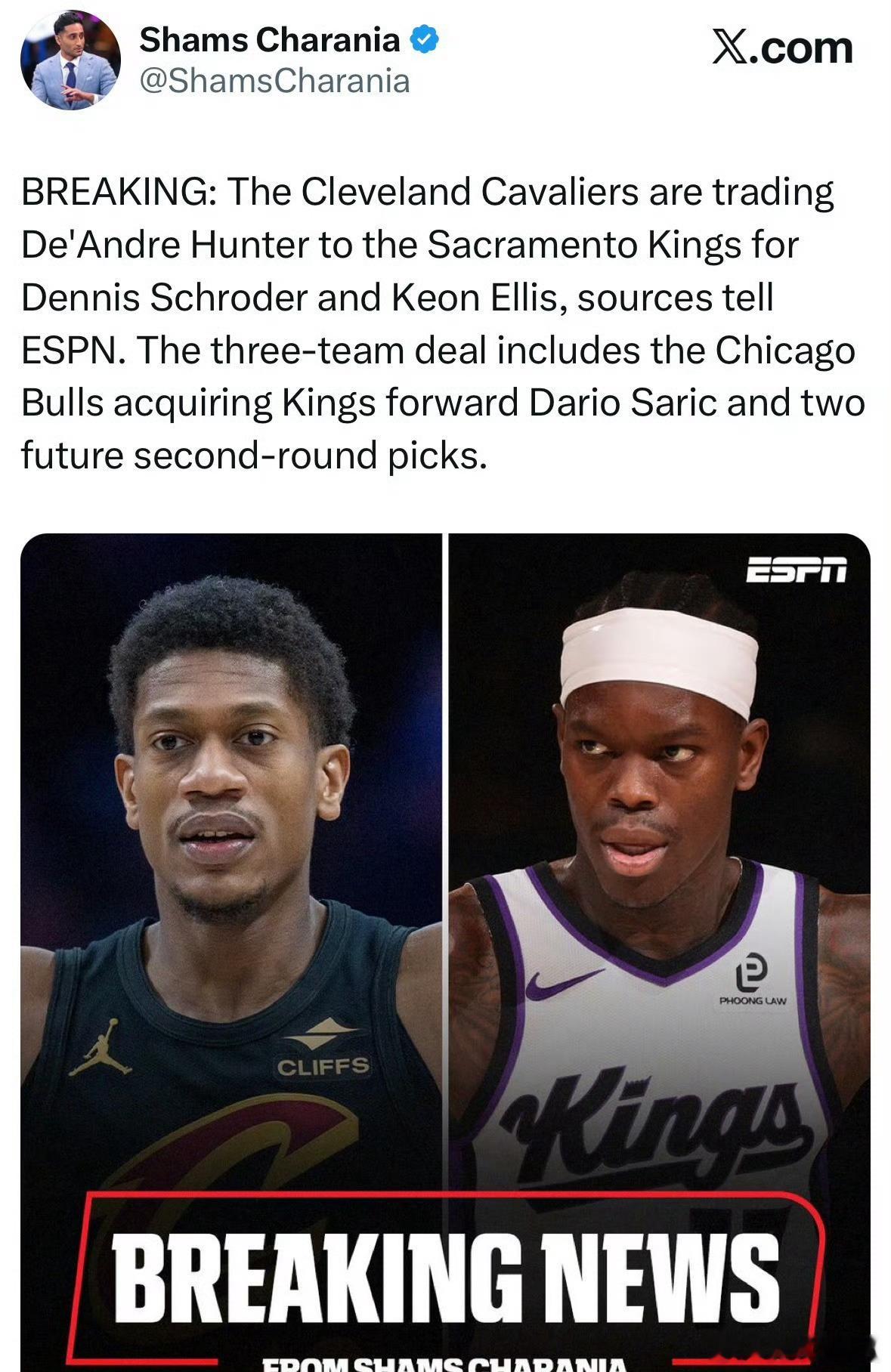最终交易为:骑士得到施罗德与埃利斯!国王得到亨特!公牛得到萨里奇和两个次轮选秀权。这笔交易迅捷如风,让一旁有意补强的湖人扑了个空,而交易背后的逻辑,则是三支球队基于现状与未来的精准算计!