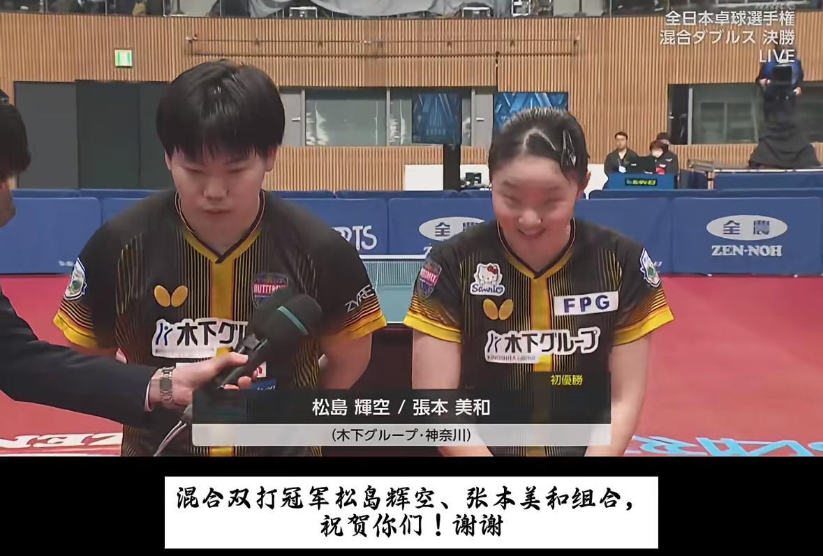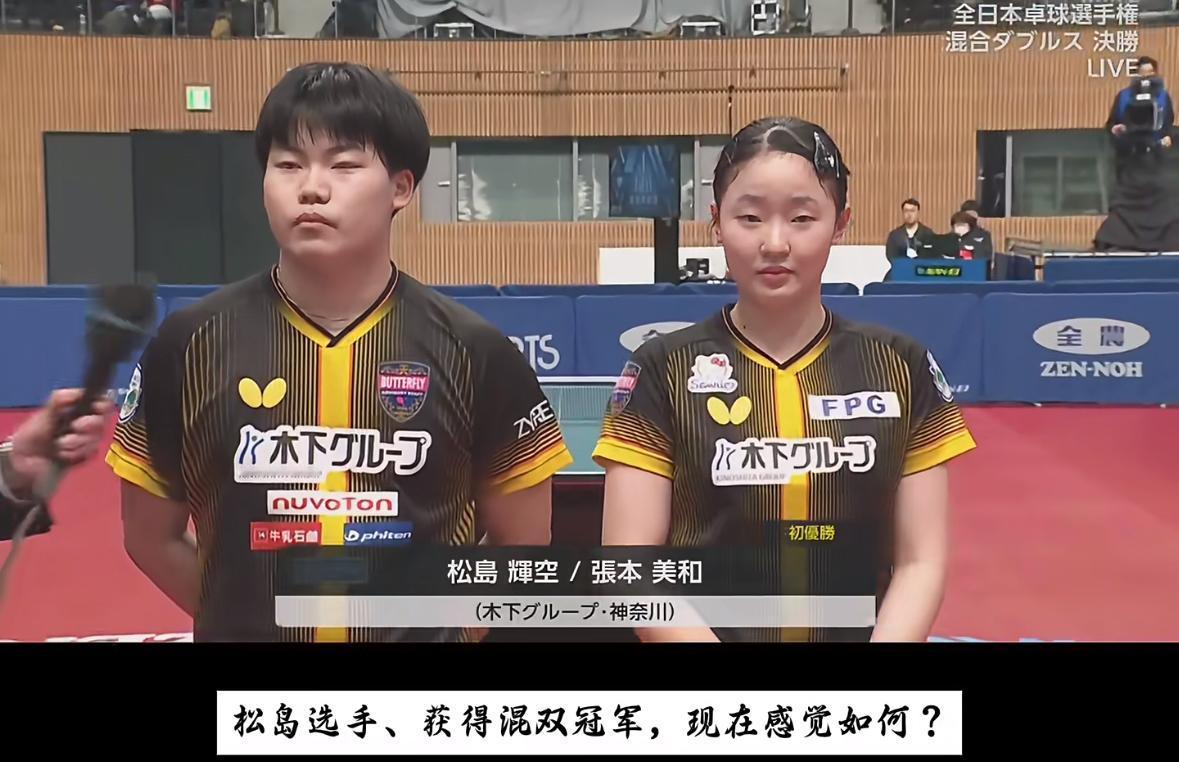 张本美和混双夺冠后,夸松岛辉空打的好,自己还需要努力💪情商很高哦! 张本美和在全日锦可谓大丰收, 夺得青年组女单冠军, 成人组女单,混双,女双冠军, 四冠王加身,张本美和在 赛后采访中表示: “我和松岛最近在混双项目上 夺冠非常开心,看到松岛打出很多精彩球,我知道我也要努力💪, 逆转获胜,说明我们向好的 方向发展!” 松岛在采访中没有一丝笑容, 张本美和的情商很高, 夺冠夸搭档, 首先肯定搭档的付出, 松岛感觉一定会在心里憋笑吧……