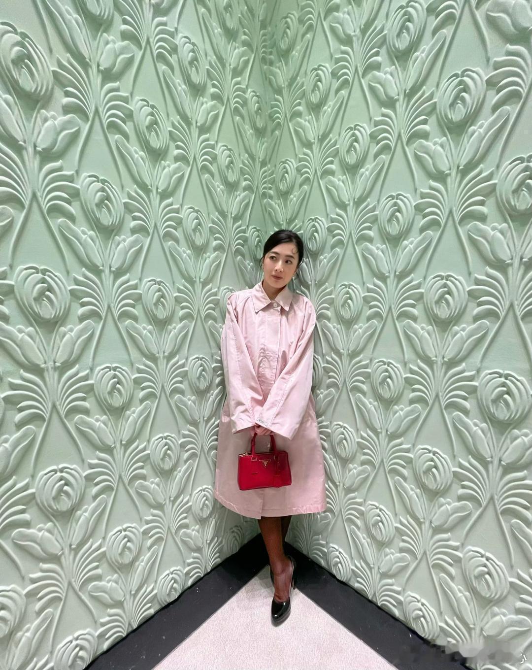 相比郑秀文的外套,甘比的品牌外套看起来有点掉价,版型偏大,面料很皱,颜色像褪色了一样。