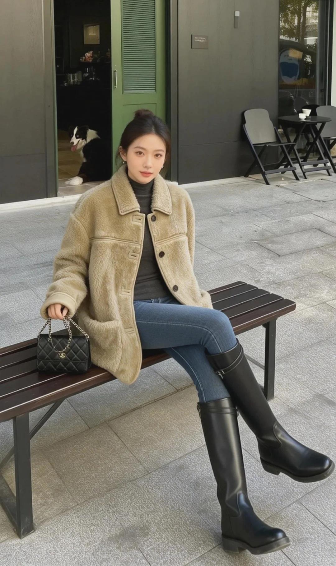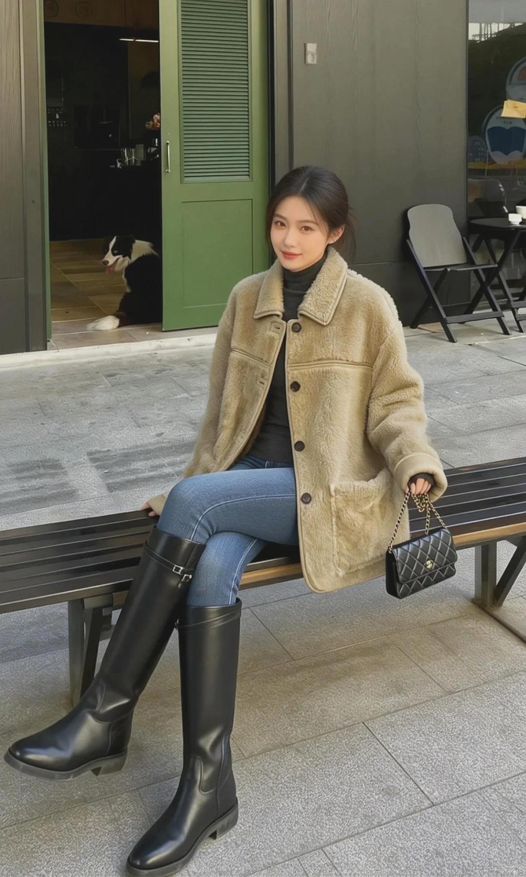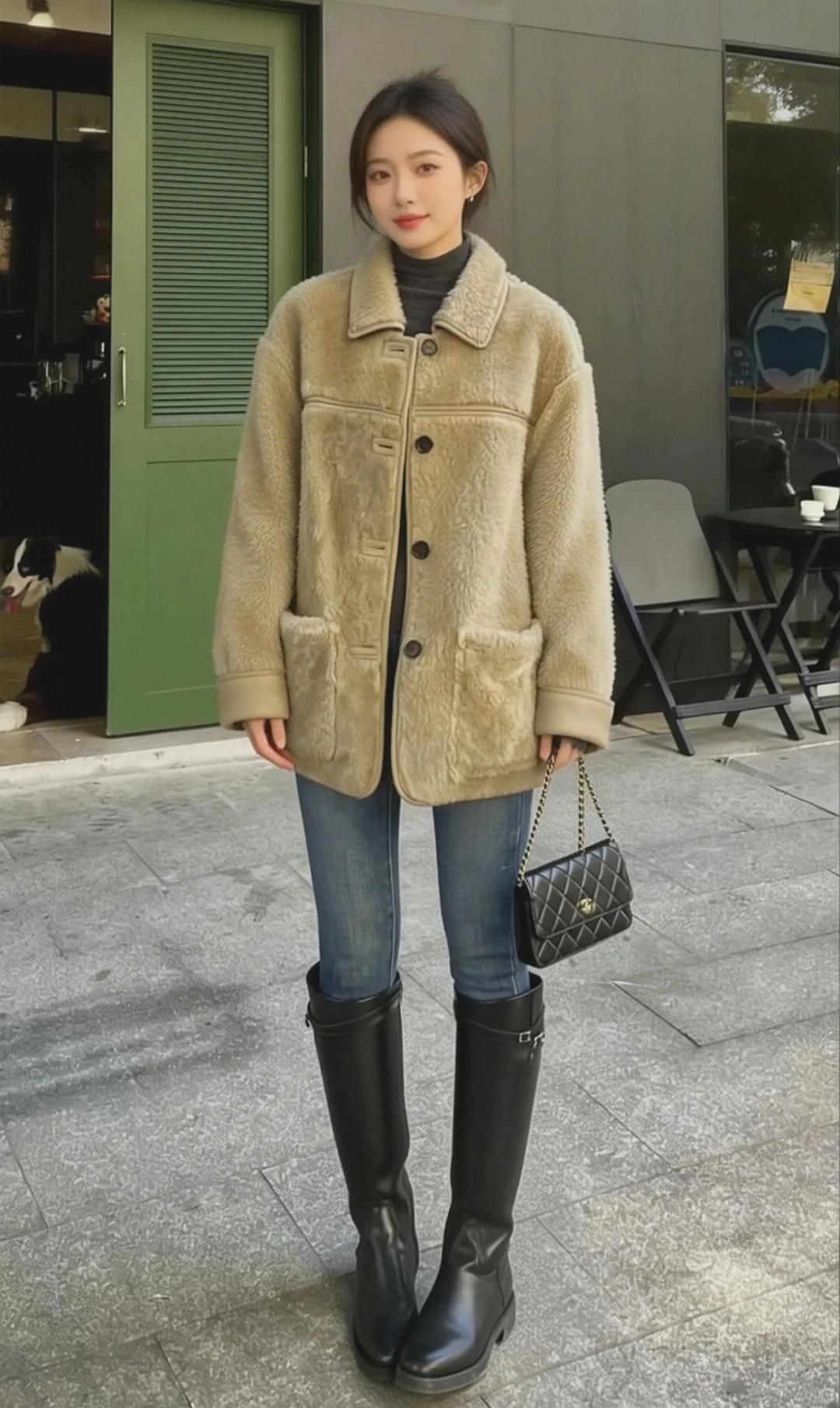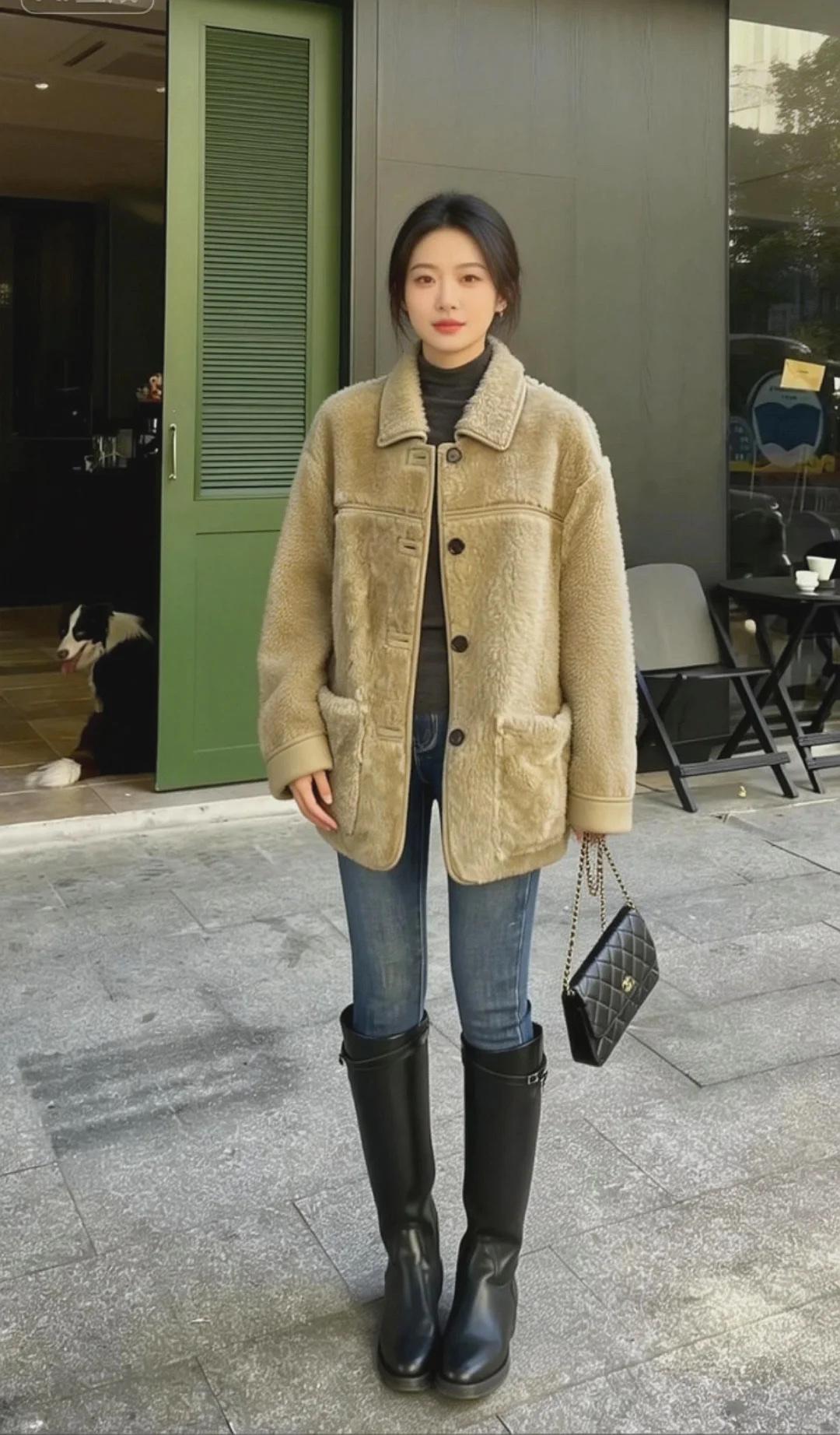 秋冬本命羊羔毛|温柔又保暖的松弛感 浅驼色外套软fufu的,像裹了团棉花 内搭黑高领+紧身牛仔裤+长靴 慵懒随性又显比例,出街被问爆🔗初雪穿搭[话题] OOTD[话题] 长靴穿搭[话题] 每日穿搭[话题] 氛围感穿搭[话题] 秋冬穿搭[话题] 日常穿搭[话题] 靴子控[话题] 长靴控[话题]