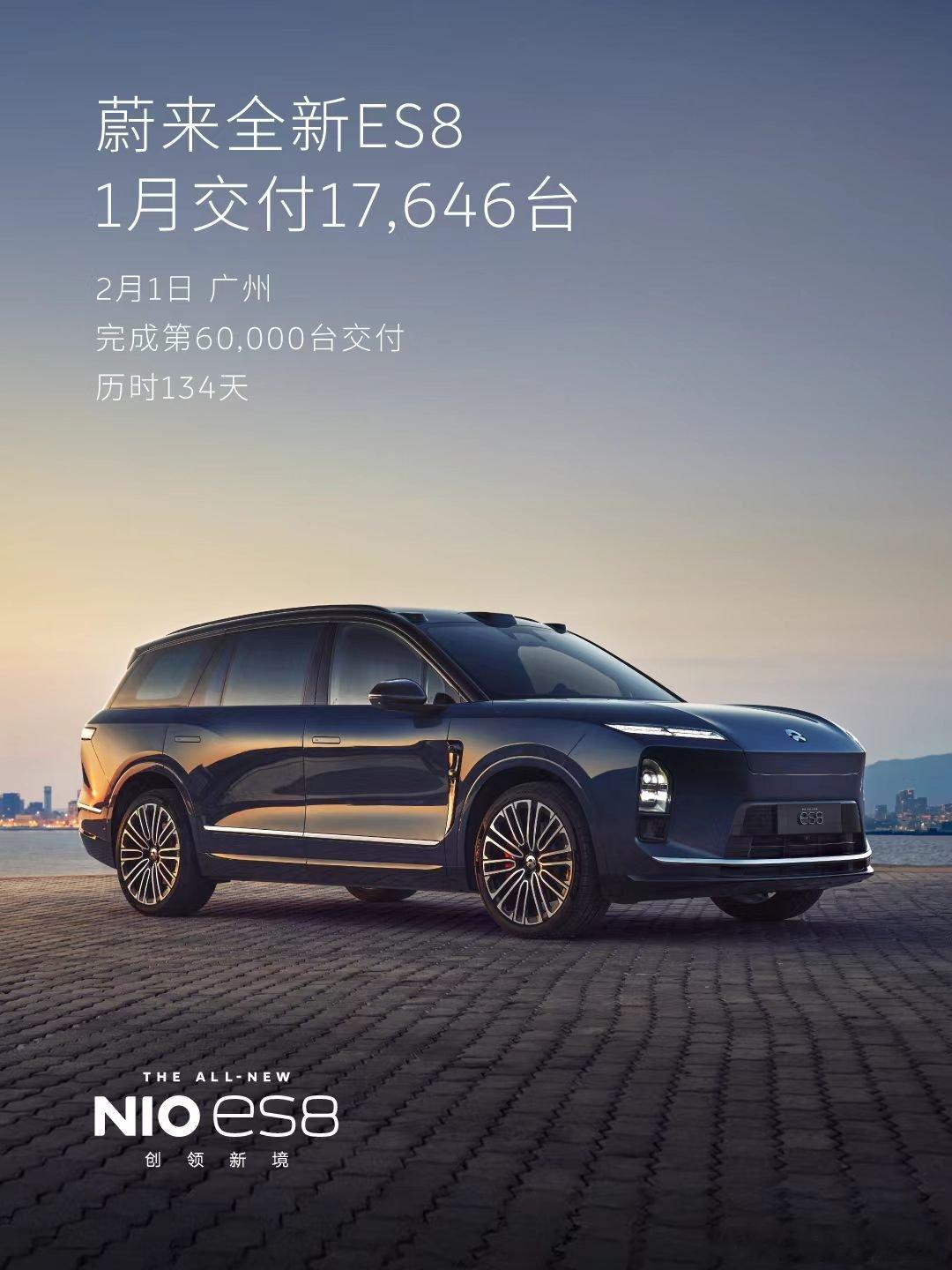 蔚来公司一月份交付 27182 台车ES8 是是真爆款的存在交付量是 17646 台
