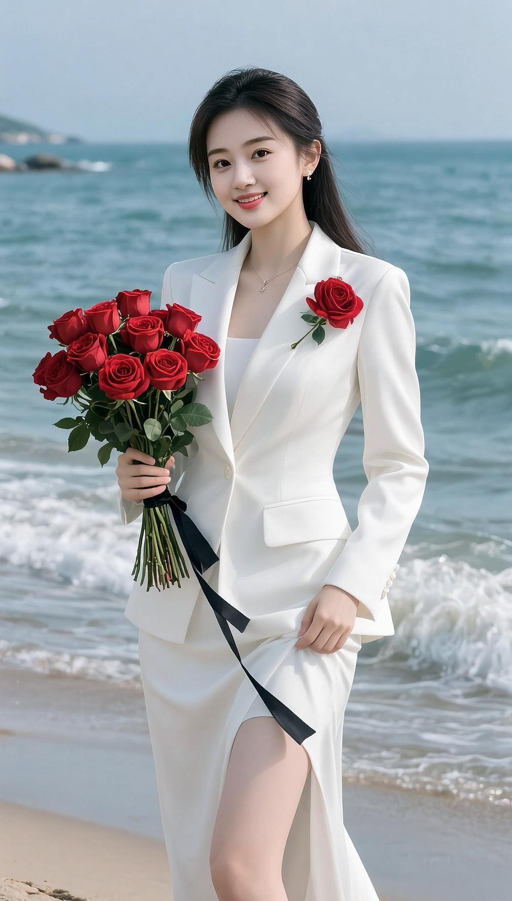 AI白西装情致 气质女人 海边拍照