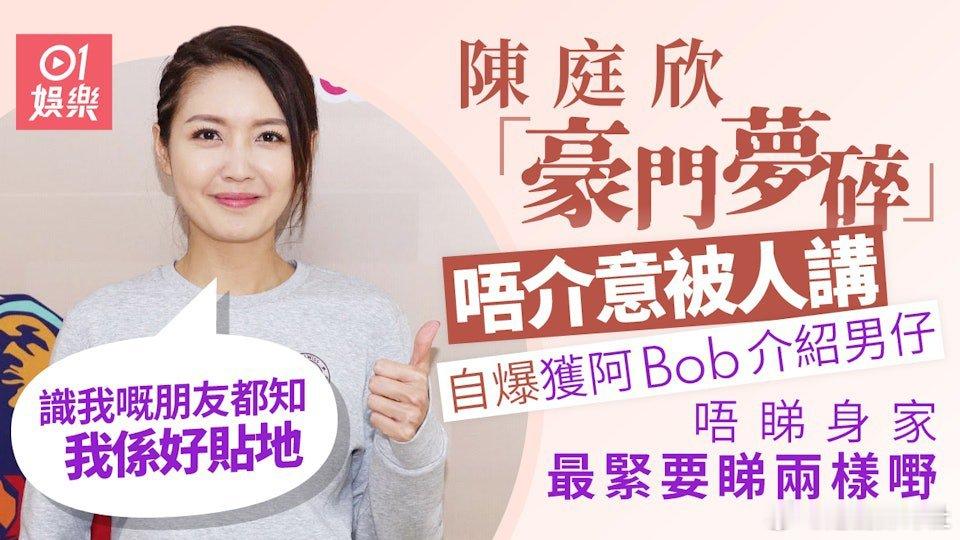 拍拖八年始終未能開花結果,有不少網民嘲諷陳庭欣「豪門夢碎」,甚至指她是浪費青春,對此,她就有自己看法:「其實我覺得冇話咁計,一段感情唔可以用八年或八個月十八年咁樣計。所以我覺得如果有一刻我哋雙方面都決定咗或者咁樣有唔同諗法,我覺得咁樣仲好。(之前你入馬場,有網民話你釣金龜婿,介唔介意?)我唔介意,認識我嘅朋友都知道我係好貼地嘅,冇辦法去解釋咁多嘢。」另問到38歲會不會考慮去凍卵,她表示:「唔會呀,最緊要搵到真正愛你嘅人。」認為年齡不是一個問題。