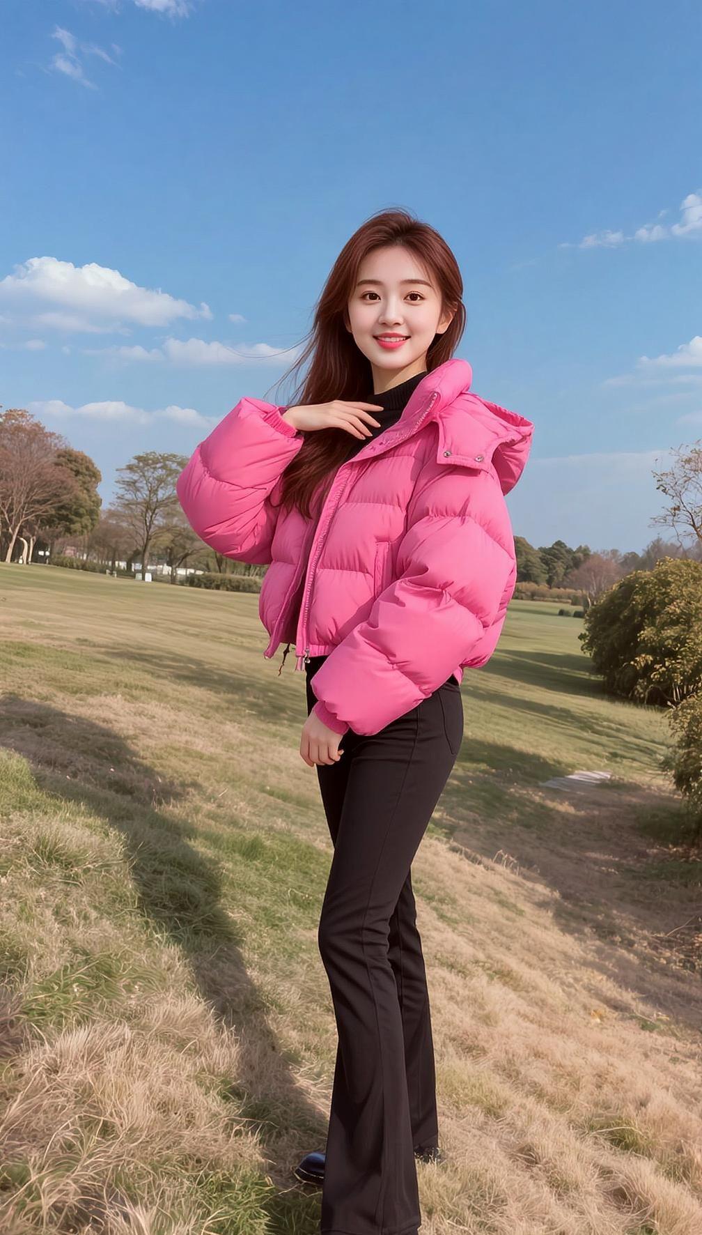 AI户外粉袄照 抖音ai创作