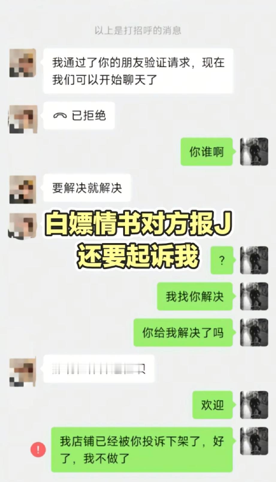 为了白嫖200块钱情书,把亲爹的生意都要干黄了! 一个男的为向女友求婚,找商家定制手写《上林赋》,商家先寄了一份,他又要求加名字,商家二话不说重写了一份寄出,还让他拒收第一份就行。 谁知平台规则是拒收就自动退款,他不仅不拒收,还直接耍无赖:你们的失误凭什么找我? 然后,店家发现这男的家里开了家消毒餐具店,给他母亲打电话,仍然各种甩锅,大家知道这事之后,都跑去抵制他家的生意! 现在商家店铺被投诉下架,反过来还要被这男的报警起诉,真是恶人先告状。