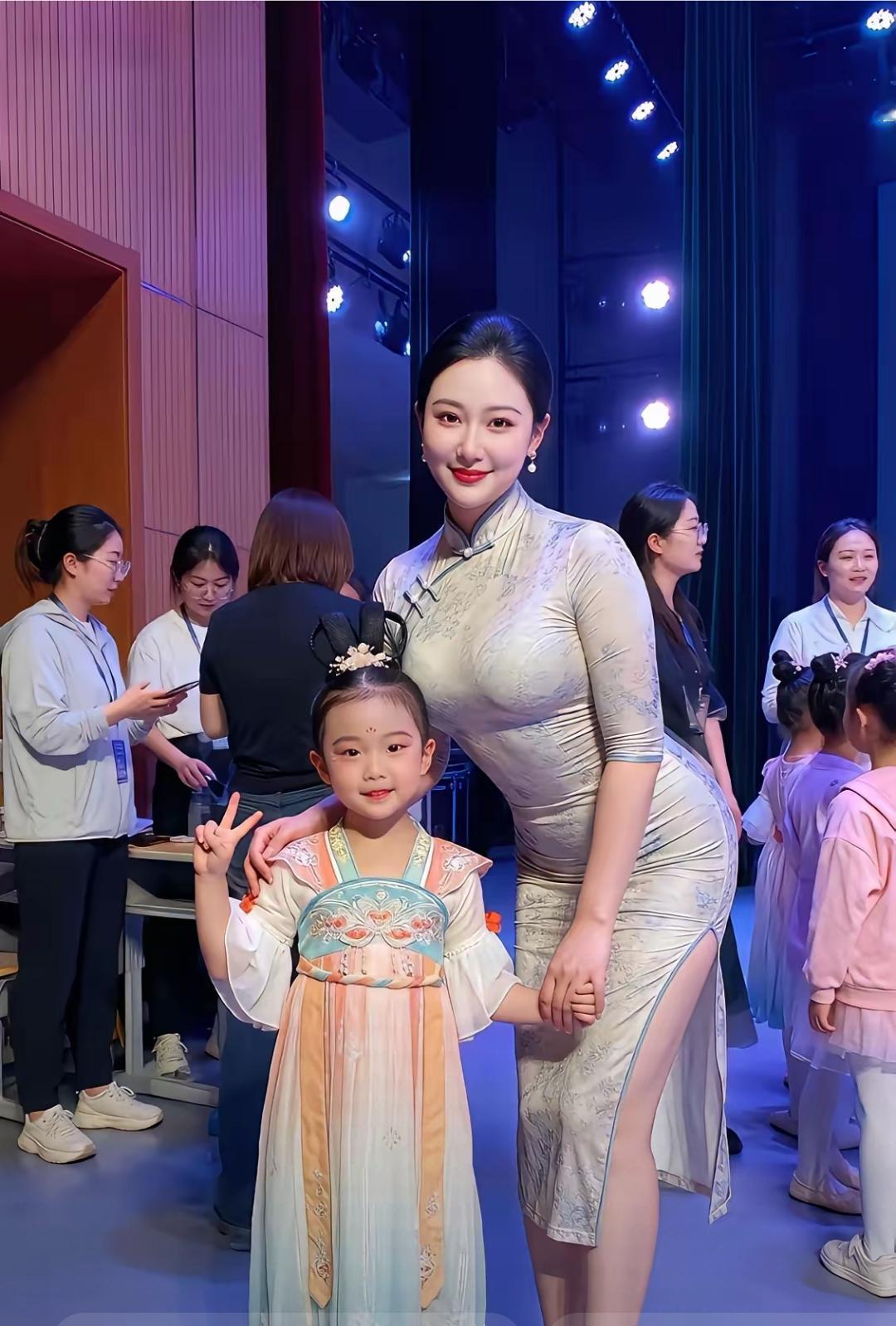 孩子学校活动,这位孩子妈妈穿祺袍,化着淡妆,身材那么好,一定会是家长人群中最亮的那颗星。