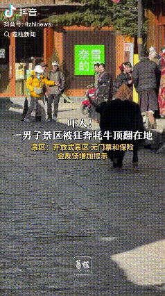 谁家的牛?云南迪庆,一男子在景区被一头狂奔的牦牛顶翻在地,男子直接倒在地上不知道
