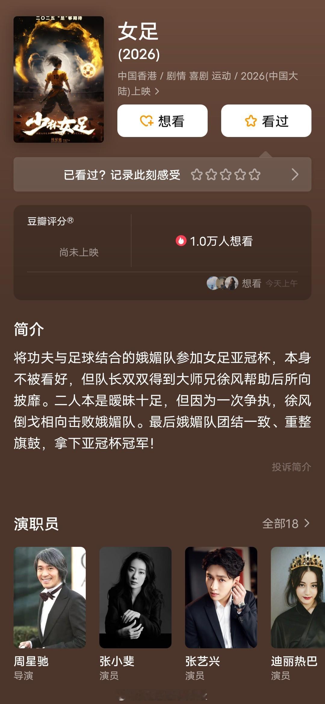 网传《女足》要上春节档,大爆电影少林足球姐妹篇,周星驰电影,主演张小斐、张艺兴、迪丽热巴。春节档突然就热闹好多。。。