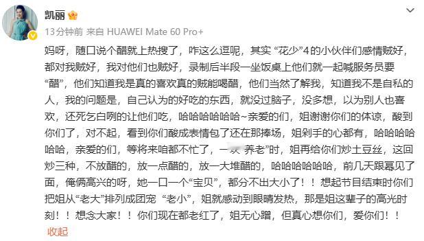 凯丽回应花少放醋事件凯丽说花少4感情贼好